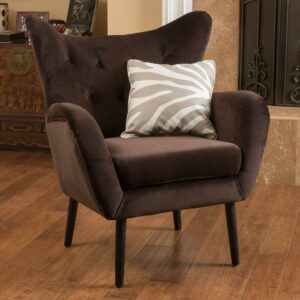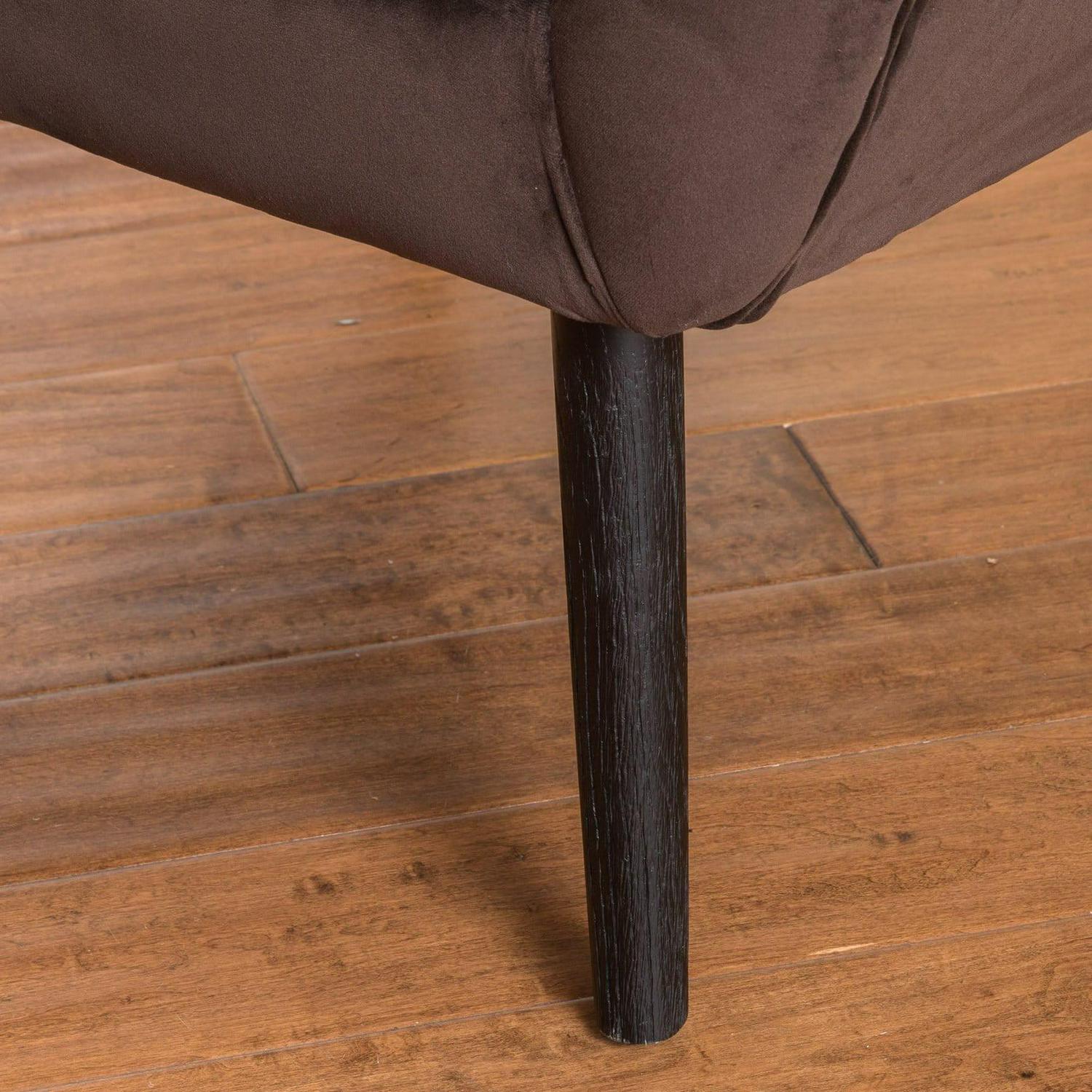 The Laura Arm Chair blends modern form with the softness of velvet to create a totally luxe look. This super-soft chair comes in your choice of available color and features a curved back, arms, and tapered legs for mid-century appeal. The tufted back adds a luxurious finishing feature.