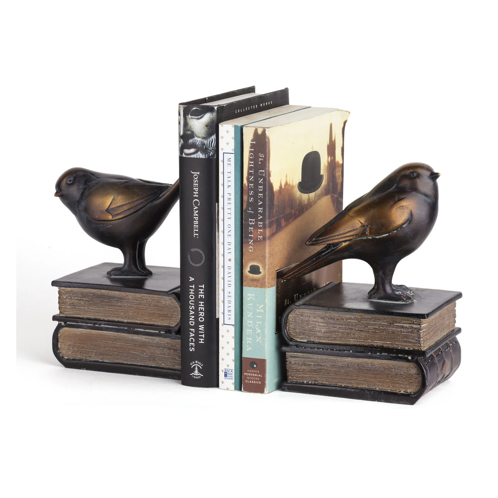 Danya B Antique Bronze Birds on Books Statue Bookends – Set of 2
