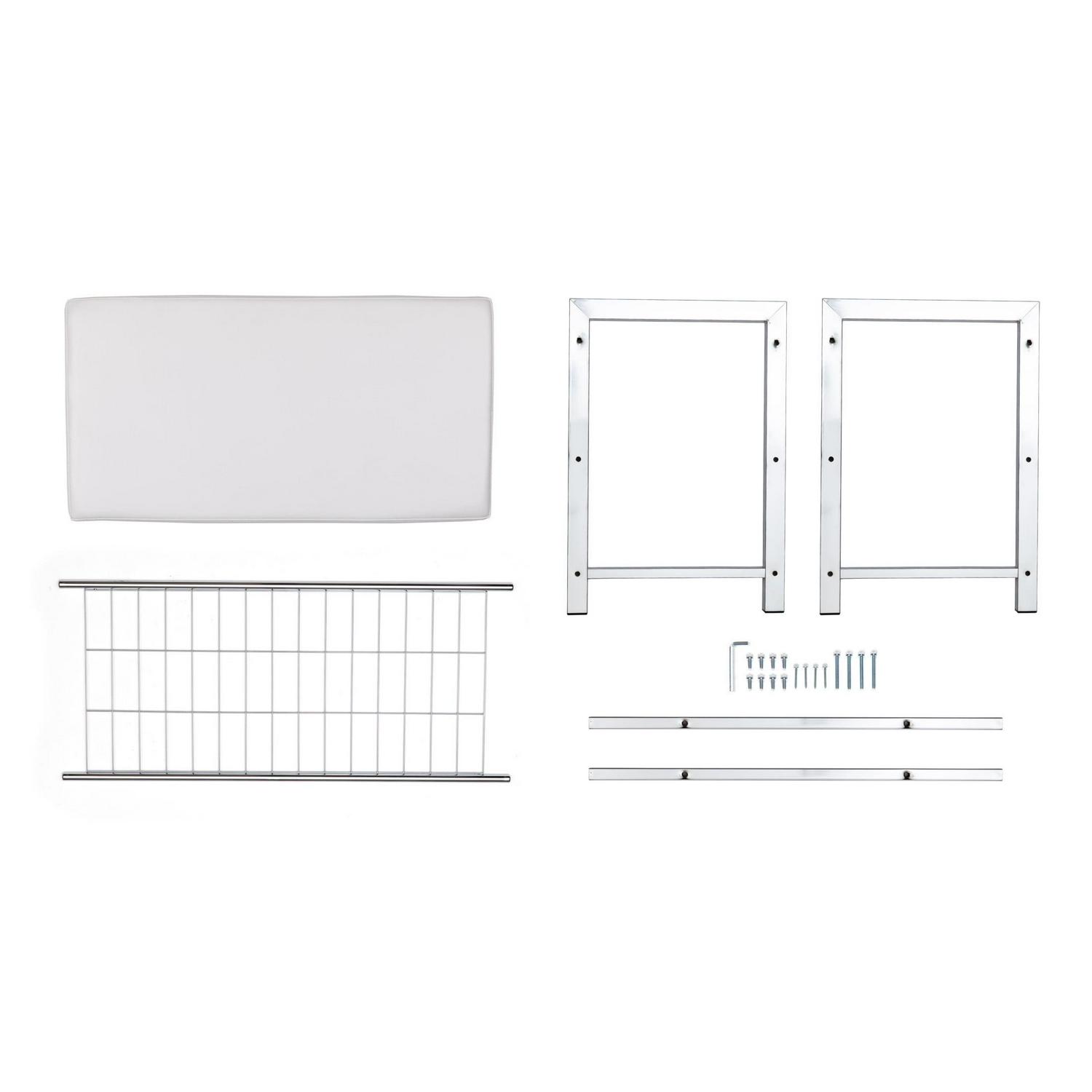 Danya B. White Leatherette Entryway Shoe Storage Bench with Chrome Metal Frame