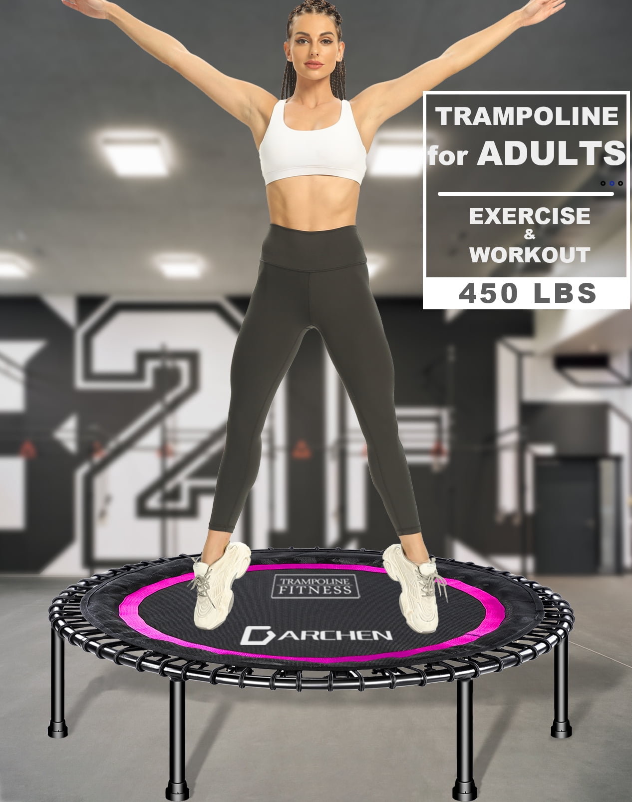 Darchen 450 lbs Mini Trampoline for Adults, Indoor Small Rebounder Exercise Trampoline for Workout Fitness for Quiet and Safely Cushioned Bounce, 40 Inch