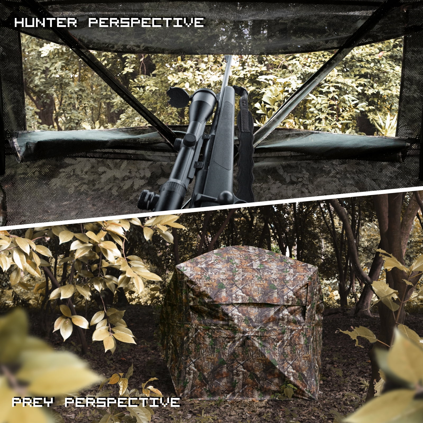 🍂 MAKE YOUR HUNTING BETTER – Big windows are on three sides that even a dark night or rainy days can giving you a 270 degree view. Silent-slide windows can adjustable any width or gap, and make it super quiet. An ultra-dark interior that keeping you undetected. Lifelike camouflage patterns design can integrate into the surrounding habitat naturally.