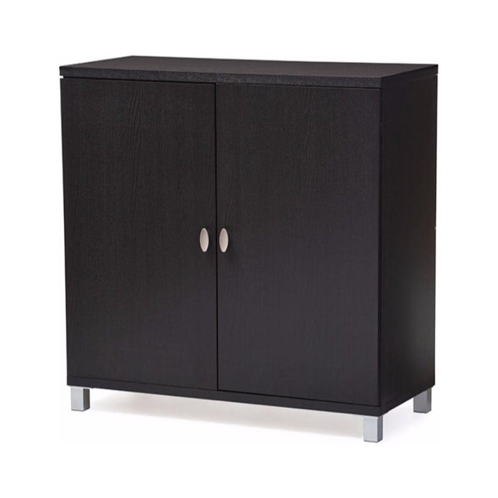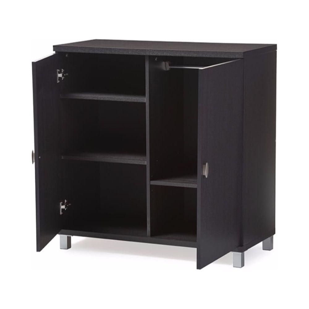 Dark Brown Wood Entryway Handbags or School Bags Storage Sideboard Cabinet Is your closet too small to use Marcy Modern and Contemporary Dark Brown Wood Entryway Handbags or School Bags Storage Sideboard Cabinet will provide you with a storage solution to house your bags! This way, you can keep all your bags together and have them easily visible to you. Even better, this bag cabinet provides you with five shelving compartment for different sizes of bags and accessories like scarves, belts, and of course bags. It will clear up closet space for your clothing and shoes as well as give you a fashionista bag haven! The better organized you are with your purses the more you will wear them and the longer they will last! Your handbags arent doing you any good laying all over your closet floor or tucked away under your bed. The key is to make them visible and easily accessible so it doesnt seem like such a hard task to change up your bag to match your outfit perfectly! Constructed of engineered wood in dark brown finishing, the Marcy is equipped with two doors to keep the dust away. For practical everyday use, the right top shelf comes with silver rail and hanger for you to hang your bags. Made in Malaysia, this bags storage cabinet requires assembly.