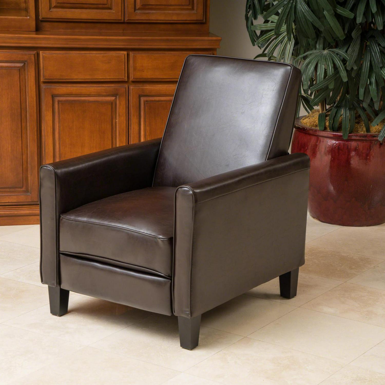 Darvis Leather Push Back Recliner – Brown