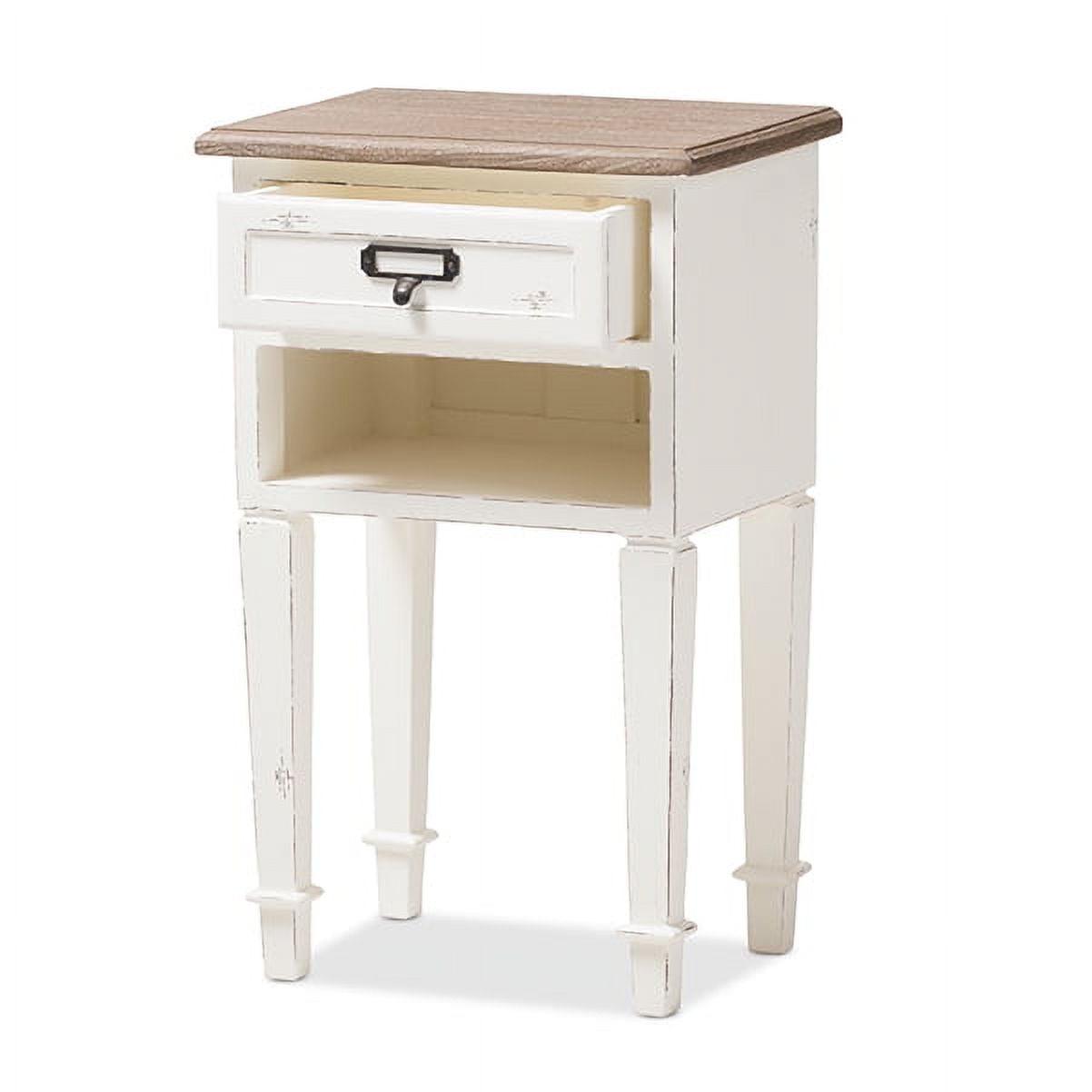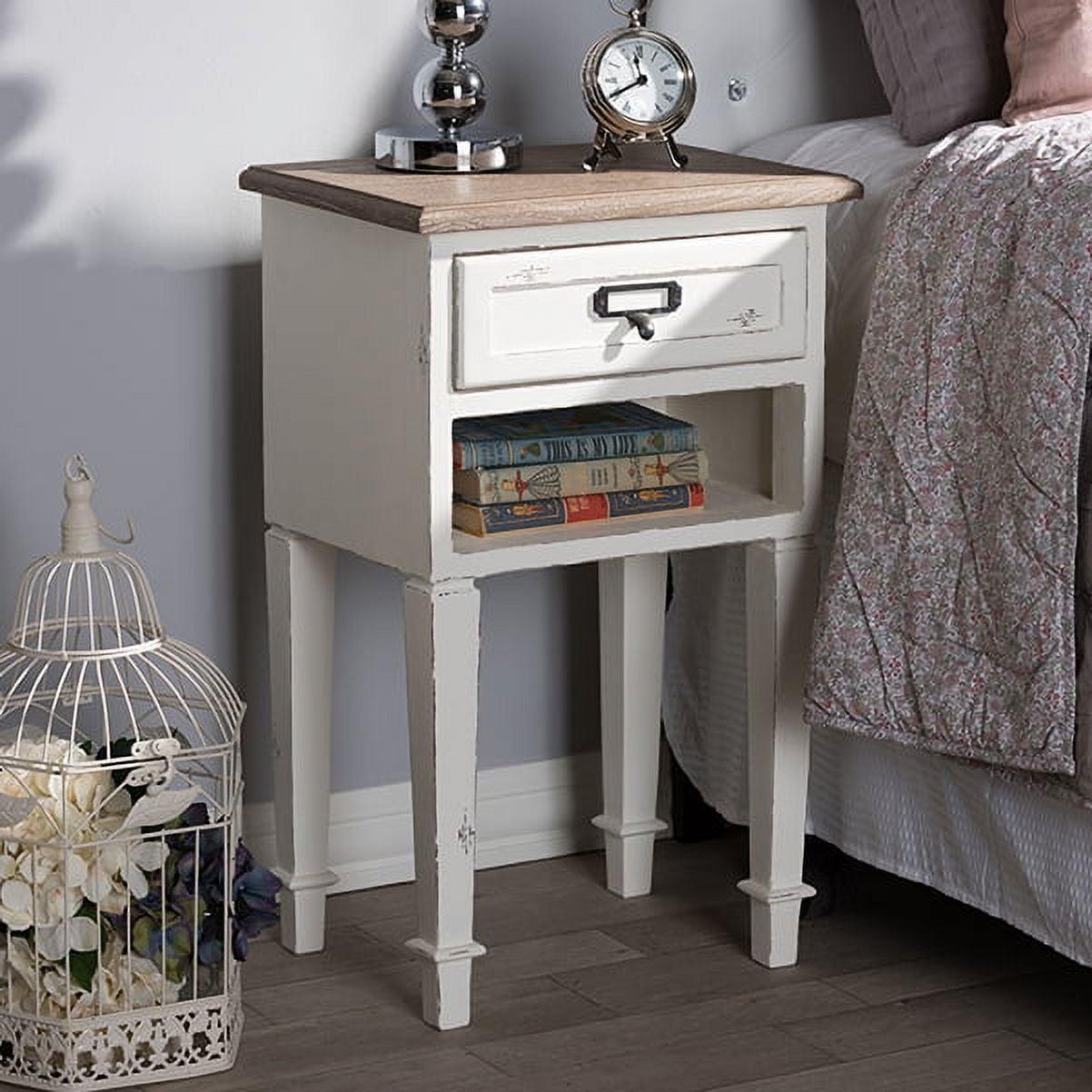 Dauphine Provincial Style Weathered Oak and White Wash Distressed Finish Wood Nightstand