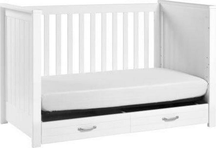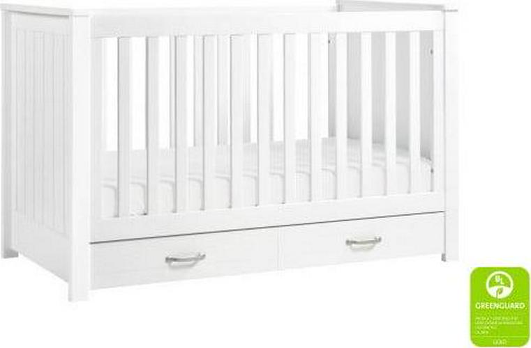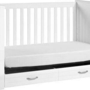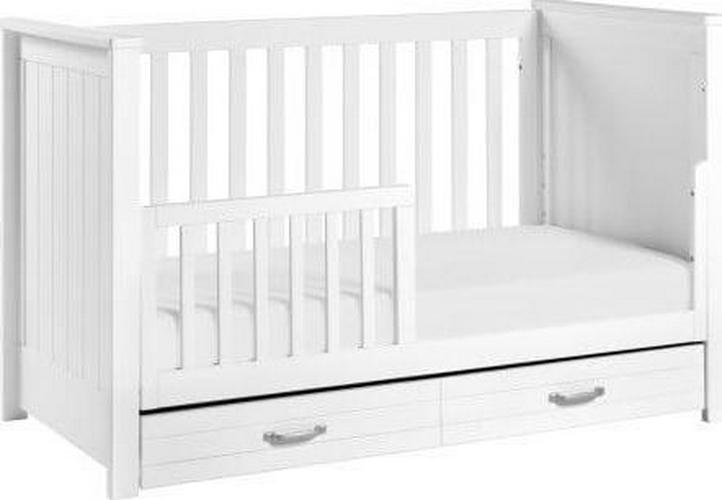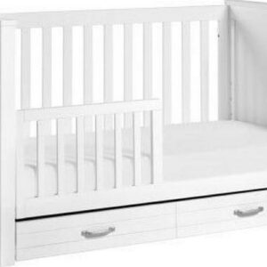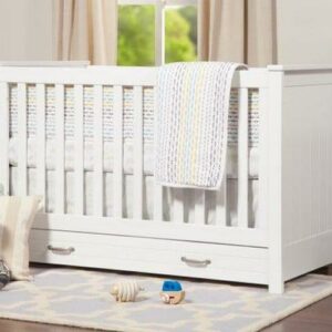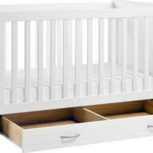The DaVinci Asher 3-in-1 Convertible Crib brings the nostalgic style of coastal cottage homes to a smart space-saving silhouette. Front and side panel beadboard detailing deliver a relaxed and charming aesthetic to the nursery. Spacious under drawer space keeps clothes, blankets and other necessities within easy reach. A valuable storage solution that grows with baby, the Asher easily converts to a toddler bed and daybed with conversion kit included.