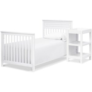 – Grows With Baby: Easily converts to mini toddler bed, daybed and twin-size bed with detached nightstand (toddler conversion kit #M20399 and twin-size conversion kit #M4389 sold separately). 4 adjustable mattress positions