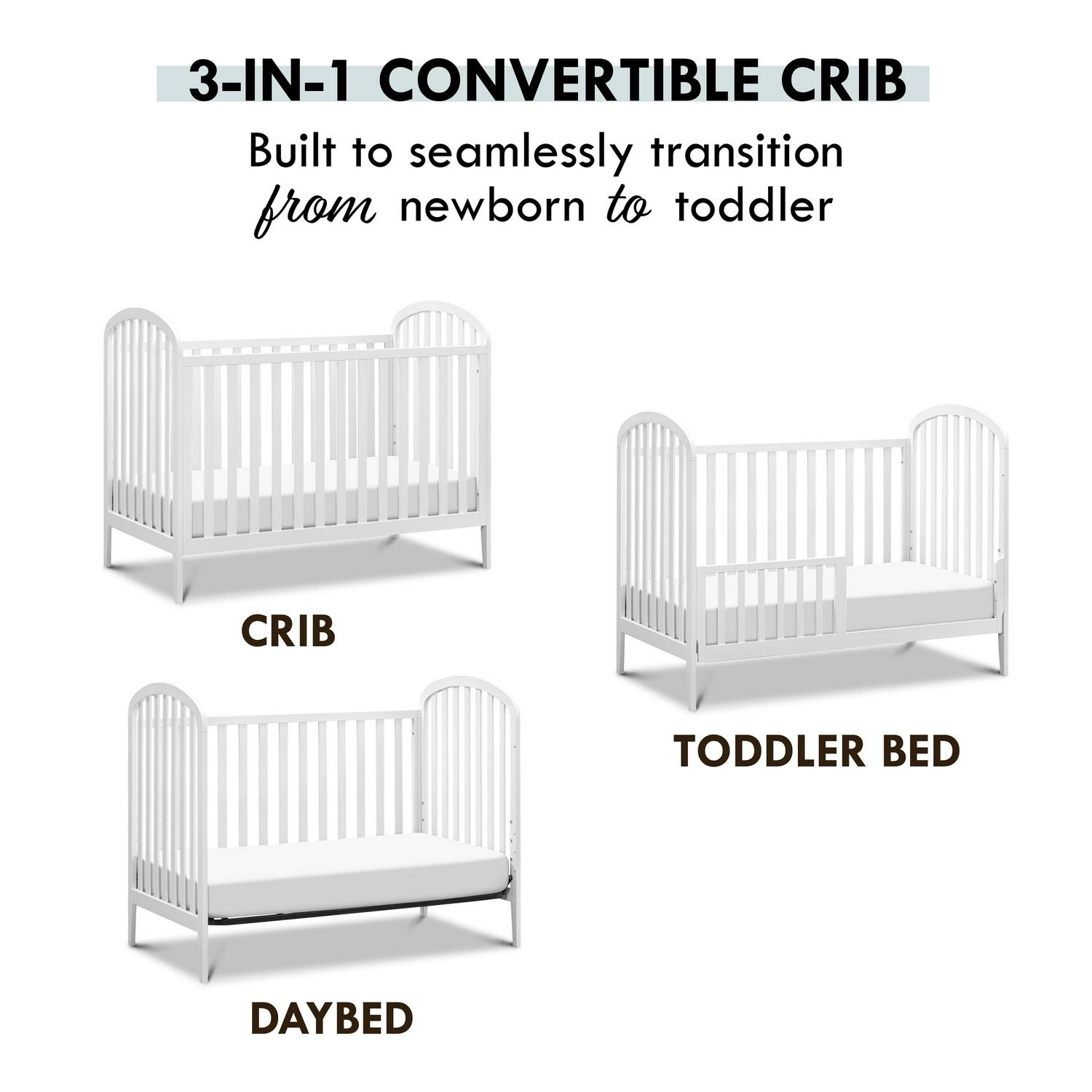 – 3-in-1 CONVERTIBILITY: Designed to save you the hassle (and extra money!) of buying multiple beds as your little one grows. It easily converts to a toddler bed and daybed (toddler kit #M3899 sold separately)