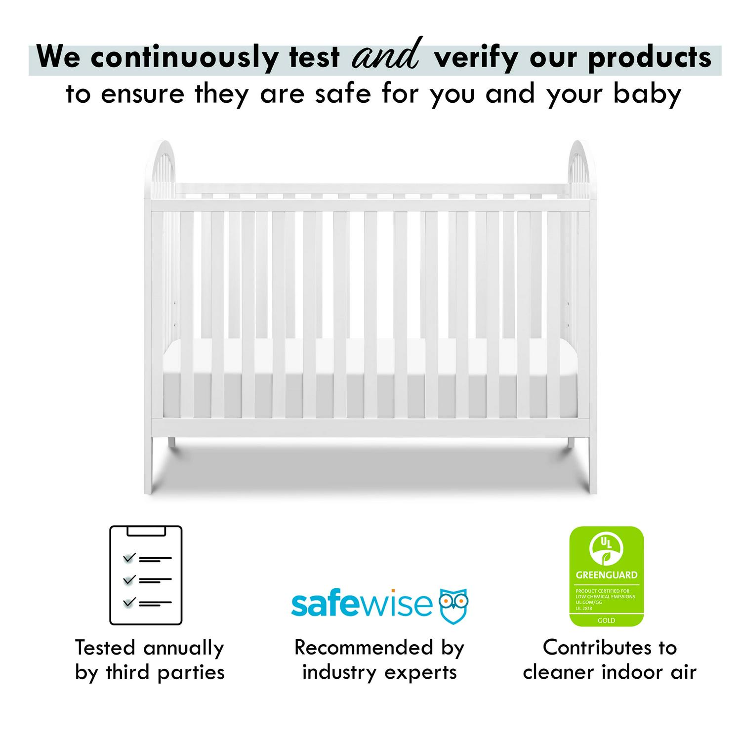 The simple yet versatile design of the Beau 3-in-1 Convertible Crib adds style to both modern and classic nurseries. Built to seamlessly transition from newborn to toddler, the crib has four different mattress heights and easily converts to a toddler bed and daybed. The Beau crib has been tested for over 10,000 chemical emissions and VOCs, undergoing rigorous scientific testing to meet some of the world’s most stringent chemical emissions requirements. It contributes to cleaner indoor air, creating a healthier environment for your baby to sleep, play, and grow. Exceeds ASTM International and U.S. CPSC safety standards