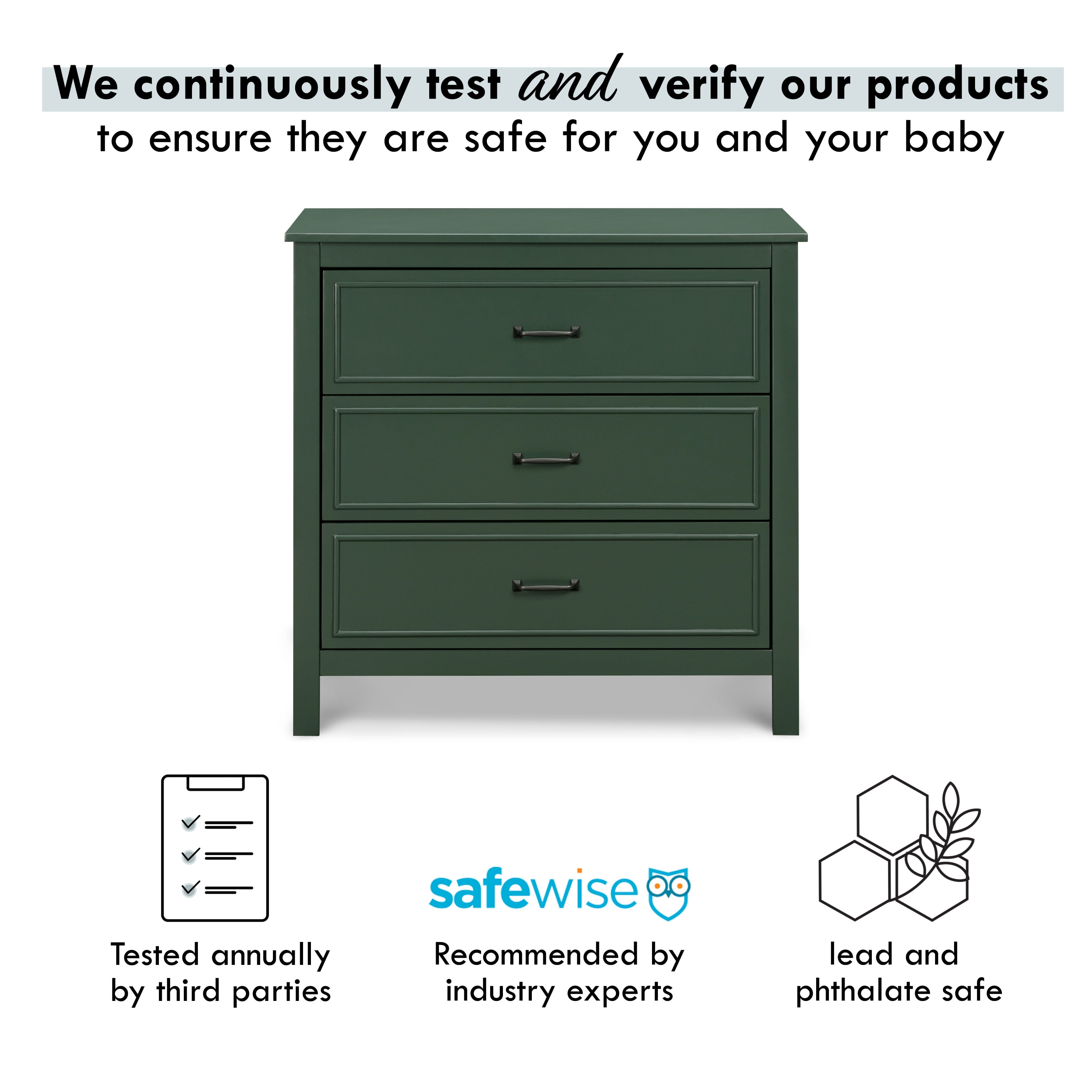 DURABILITY: 3 spacious drawers that are built to hold all the adorable baby clothes, blankets, and more VERSATILE DESIGN: Changing station now. Big kid dresser later! This dresser is designed so that you can add a DaVinci changing tray (#M0219) to use as a convenient changing station during the baby years SMOOTH GLIDE: Euro drawer glides make opening the drawers easy even when your hands are full with your baby METAL PULLS: This dresser features upgraded metal pulls that protect it from easy nicks and damages EASY ASSEMBLY: We’ve done the hardest part for you! Drawer glides come pre-assembled so that you can put your dresser together more quickly and start enjoying your nursery sooner QUALITY MATERIAL: Made of solid sustainable New Zealand pinewood and TSCA compliant engineered wood -only the best for your baby FOR YOUR BABY’S SAFETY: Say goodbye to toxic chemicals! Finished in a non-toxic multi-step painting process and lead and phthalate safe. Rest assured knowing it meets or exceeds ASTM International and U.S. CPSC safety standards. Stop mechanism and anti-tip kit included for additional safety