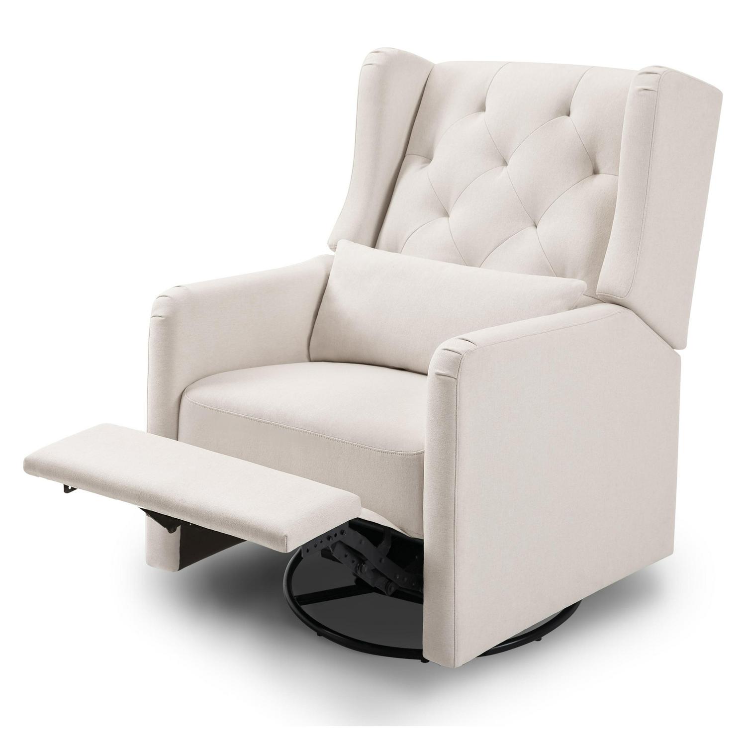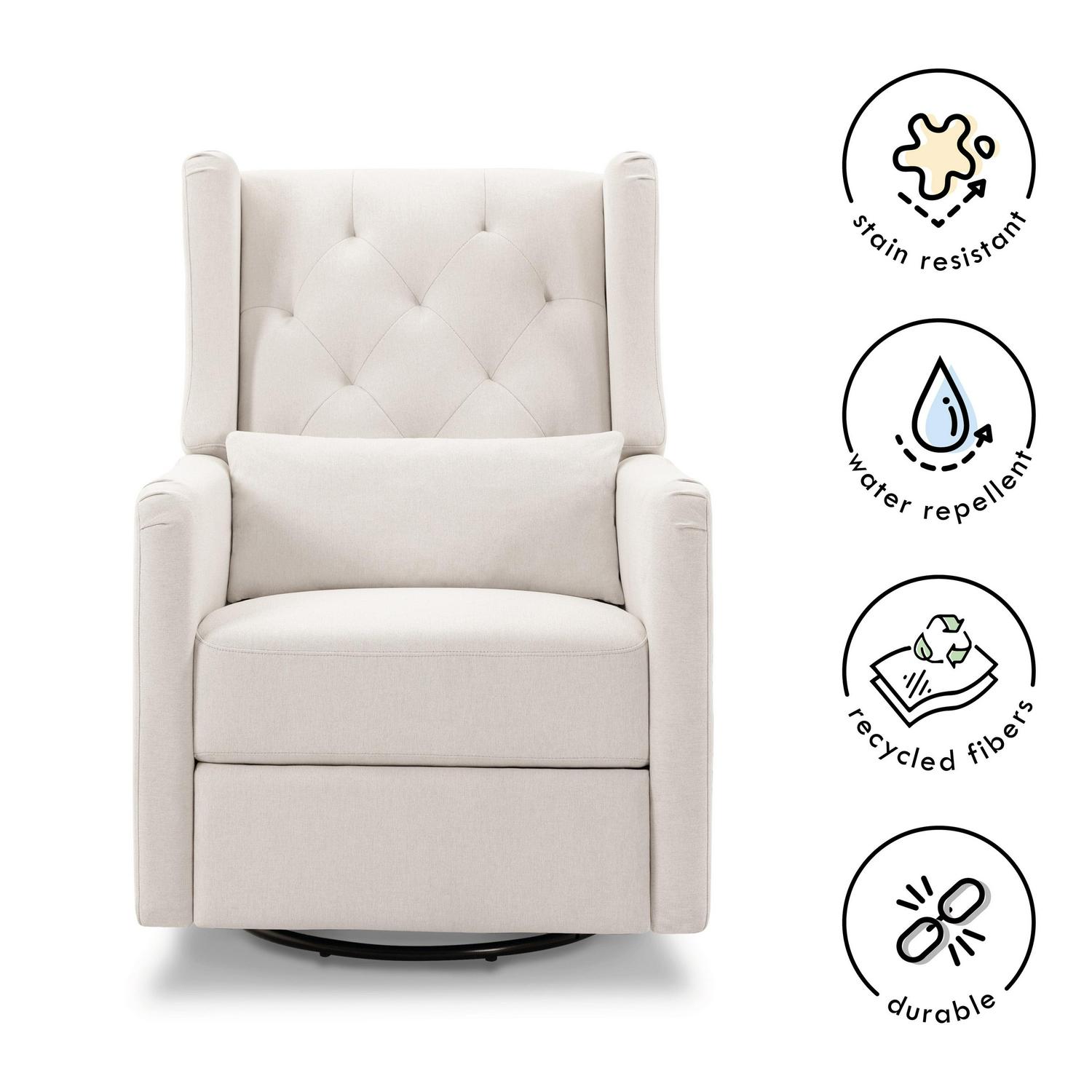 The Everly Recliner and Swivel Glider has been thoughtfully designed to make feeding time comfortable and easy. Mom can rest easy in this soft and durable glider that glides, swivels, and reclines to a peaceful resting position. Its water repellent & stain resistant fabric keeps the glider looking beautiful through years of use. With its tufted back, this timeless and versatile design can easily transition to your home in the later years.