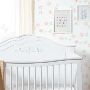 The Fiona 4-in-1 Convertible Crib is the perfect centerpiece for your princess dream nursery. The elegantly curved headboard, beautiful floral applique, and delicate spindles give this crib just the right amount of feminine touch. Complete the look with our DaVinci Kalani 3-Drawer and 6-Drawer Dressers.