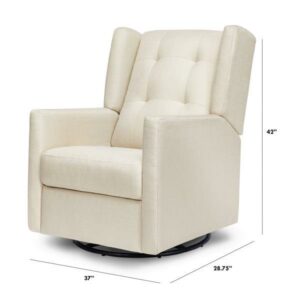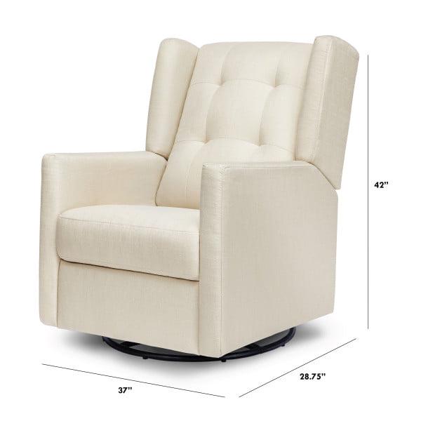 The DaVinci Maddox Recliner and Swivel Glider has been thoughtfully designed to make feeding time comfortable and easy. Moms and dads can rest easy in this comfortable, durable chair that glides, swivels, and reclines to a peaceful resting position. With its clean lines, tufted design and wingback style, this timeless and versatile recliner can easily transition to your living room in the later years.