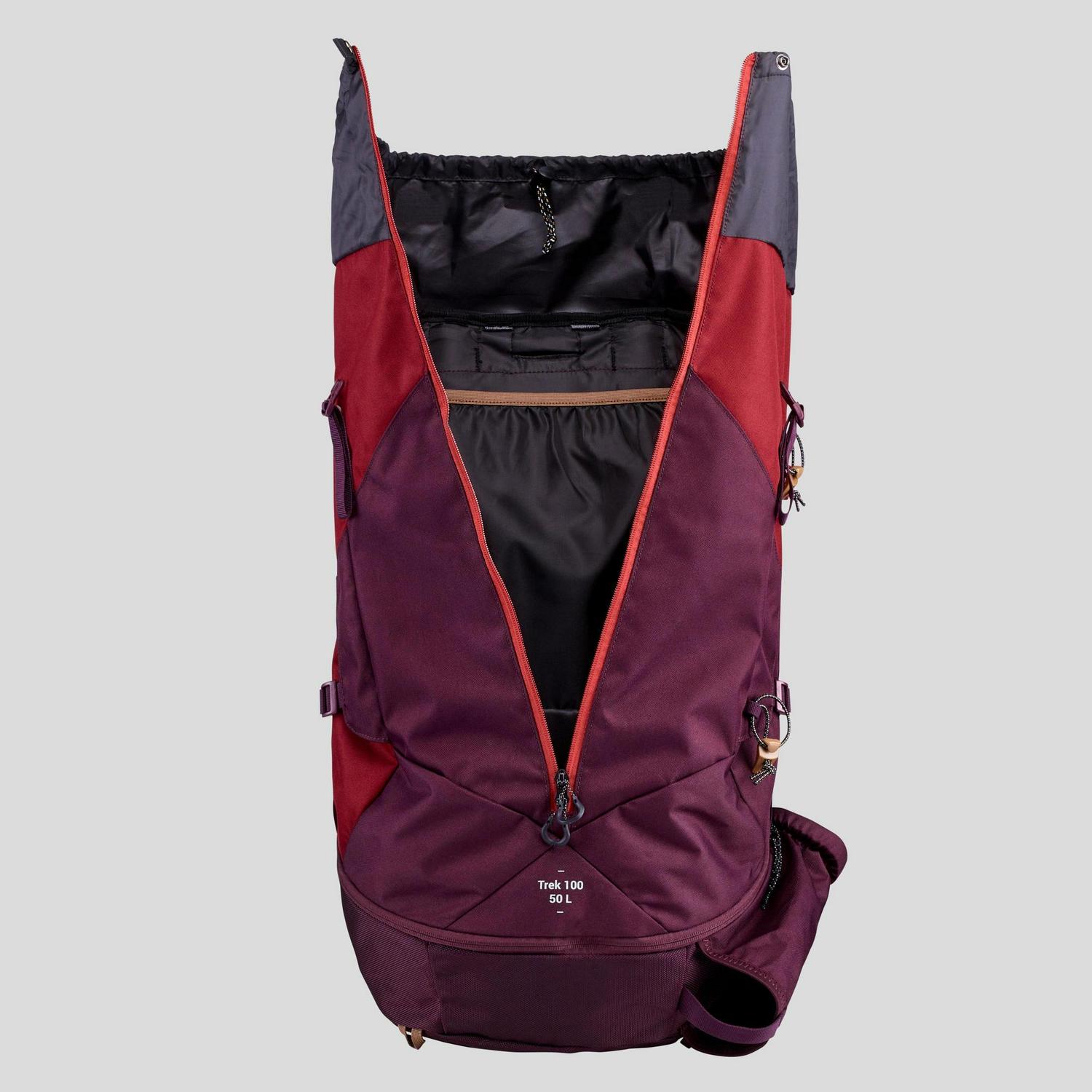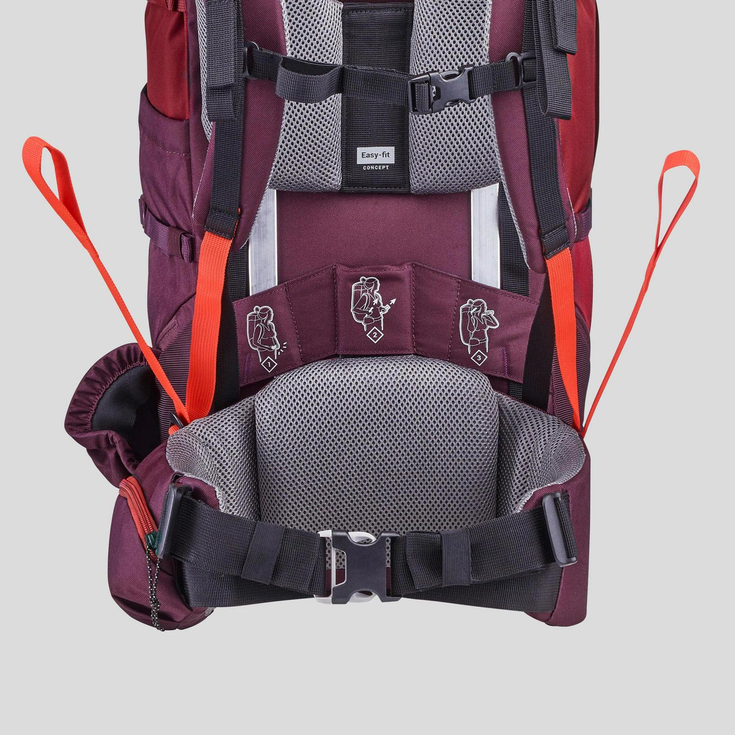 Forclaz Trek 100 Easyfit, 50 L Hiking Backpack, Women’s. Our team of backpacking enthusiasts designed this easily adjustable 50 L backpack for women on multi-day mountain treks, seeking comfort and simplicity. This bag offers simplicity and comfort without compromising its technical features. Our women’s models have been specially designed to fit the female form (chest and hips) with more open straps and a high-fitted waist for greater comfort and freedom of movement. The EASYFIT system has also been designed so the back can be adjusted to a lower height. Store your bag in a dry, ventilated place away from direct light.