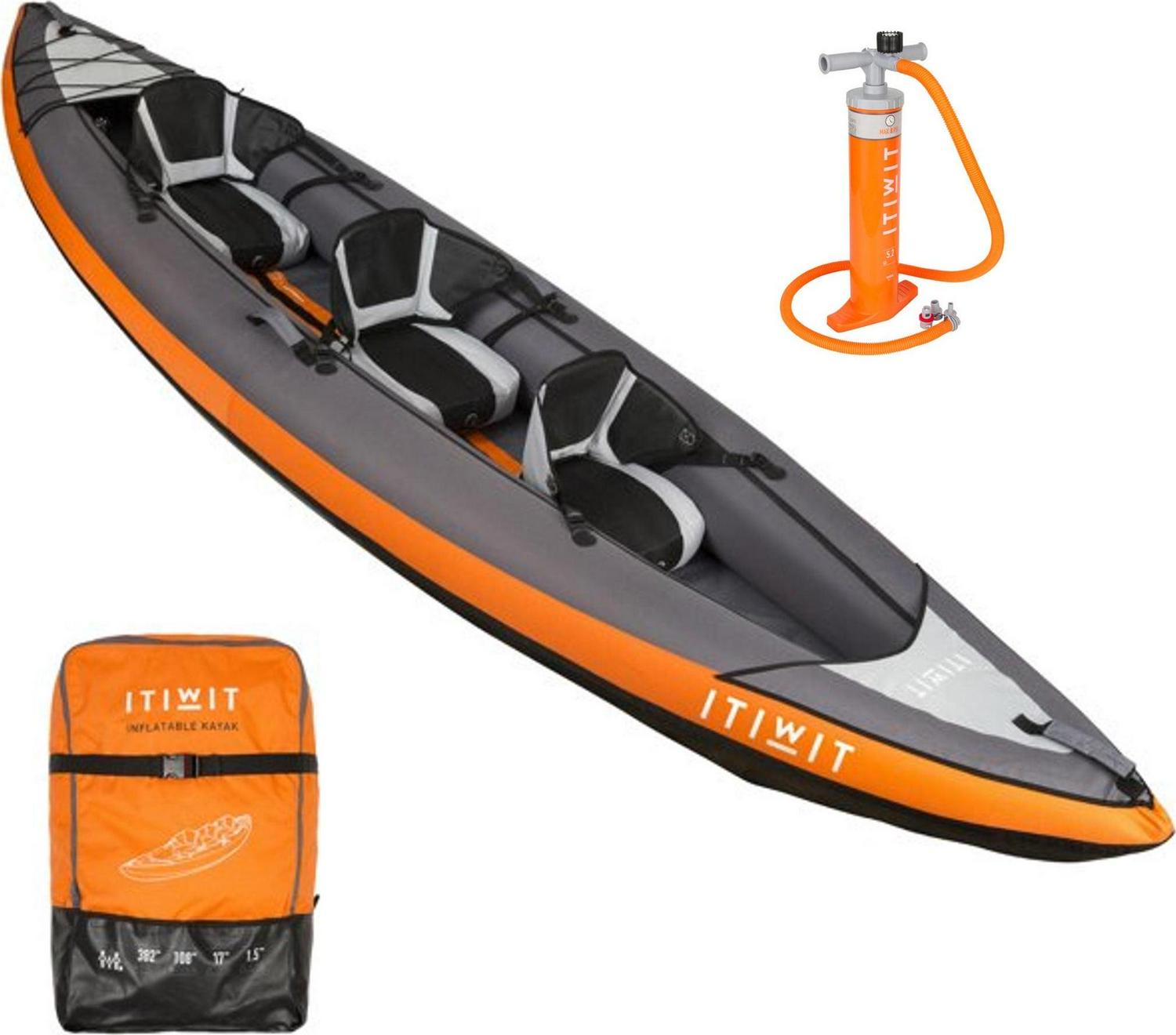 Decathlon Itiwit Inflatable Recreational Sit on Kayak with Pump, 2 or 3 Person