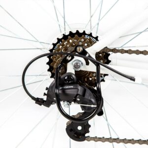– This bike is equipped with a grip shifter to change between the 6 speeds: It’s safer and easier for children as they don’t need to let go of the handlebar to change gears.