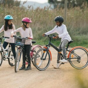 Our team of Engineers has designed and developed the Rock rider ST100 24″. Due to its 24″ tires, it is perfect for children’s first Mountain Bike looking to ride trails or uneven pavement. It comes with a new sturdy steel frame. The frame’s rear chain stays are short, making the bike responsive and easy to handle. We’ve designed this robust, easy-to-use (1 chainring) 24-inch mountain bike for helping children get started with Mountain Biking. With quick and easy front tire removal for easy transportation. Equipped with a bell, lighting, wheel reflectors, and platform pedals. Recommended for 9-to-12-year olds (4’5″ to 4’11”). We offer a lifetime warranty on the bike’s frame, stem, and handlebar. This Bike does not come included with a Kickstand or a Bottle cage.