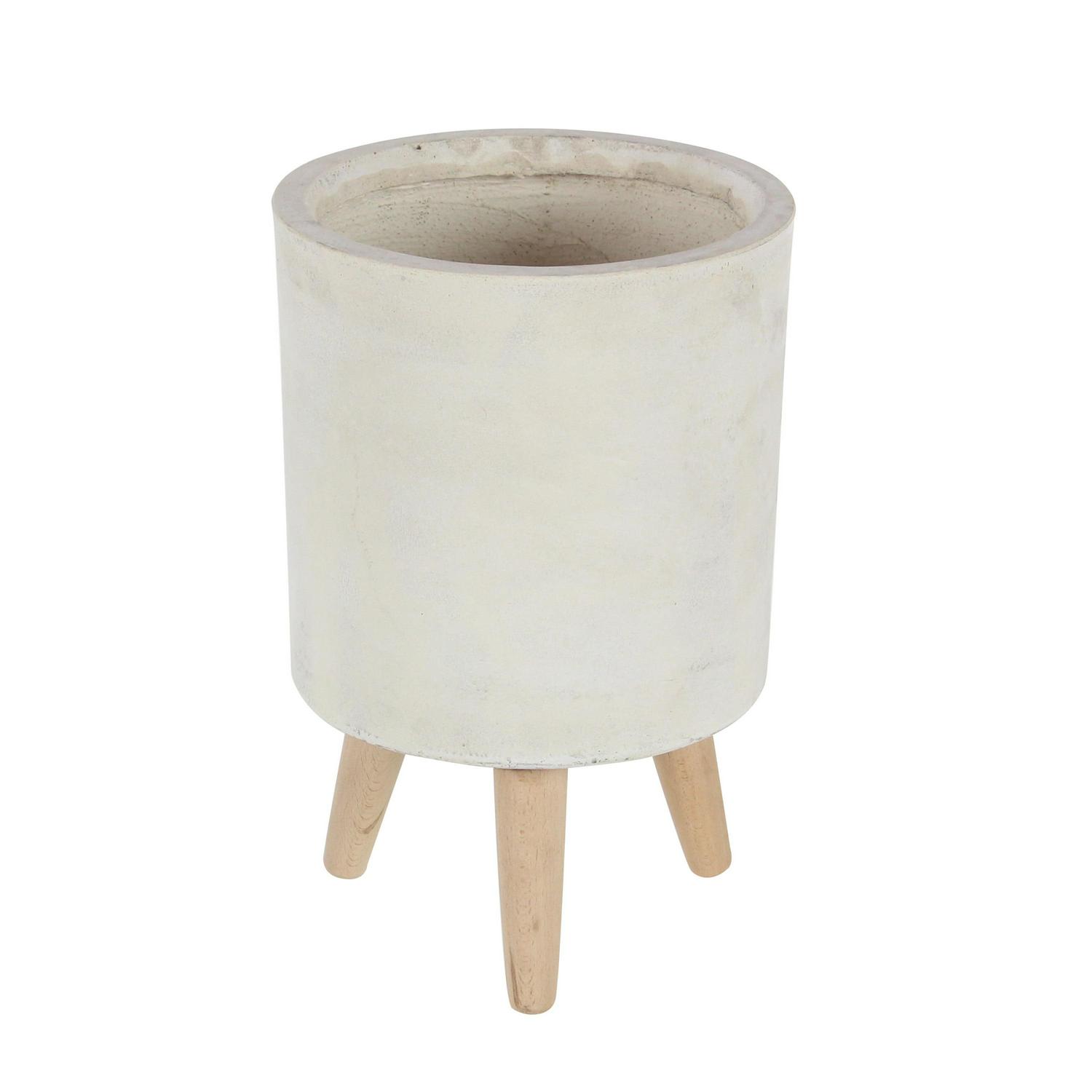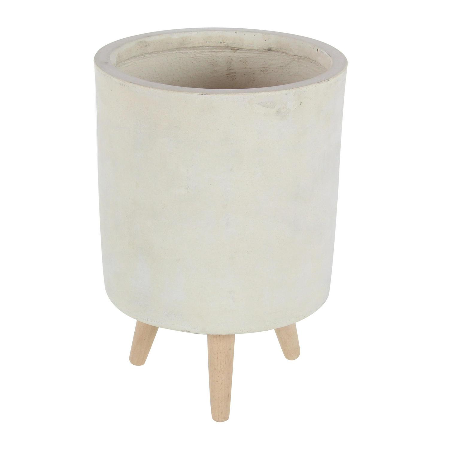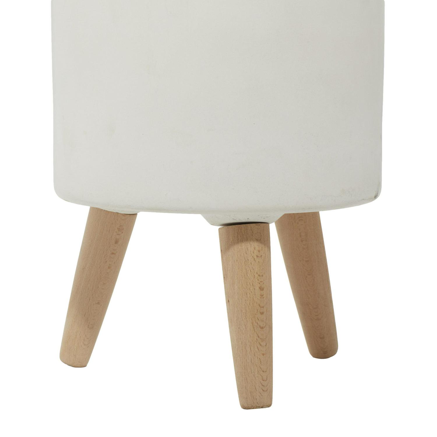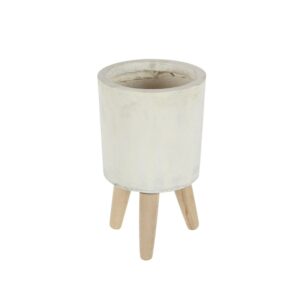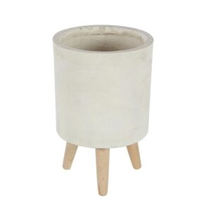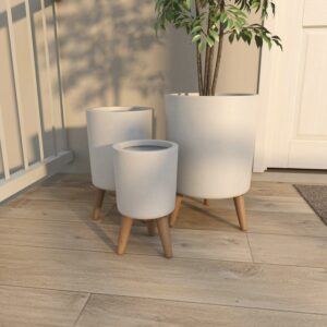 DecMode 12″, 15″, 17″H Indoor Outdoor White Fiberclay Planter with Wood Legs (3 Count) is a unique addition to your stylish home. Add dash of fresh and clean air as you place these cement-textured fiber clay planters on corner walls, entryways, and outdoor pavements. This item ships in 1 carton. Please note that this item is for decorative use only. These planters are designed with beige slanted legs for extra support. Suitable for indoor and outdoor use. This item ships fully assembled in one piece. Maximum weight limit is 5 lbs. Pots do not have drainage holes. This white colored plant pot comes as a set of 3. Contemporary style.