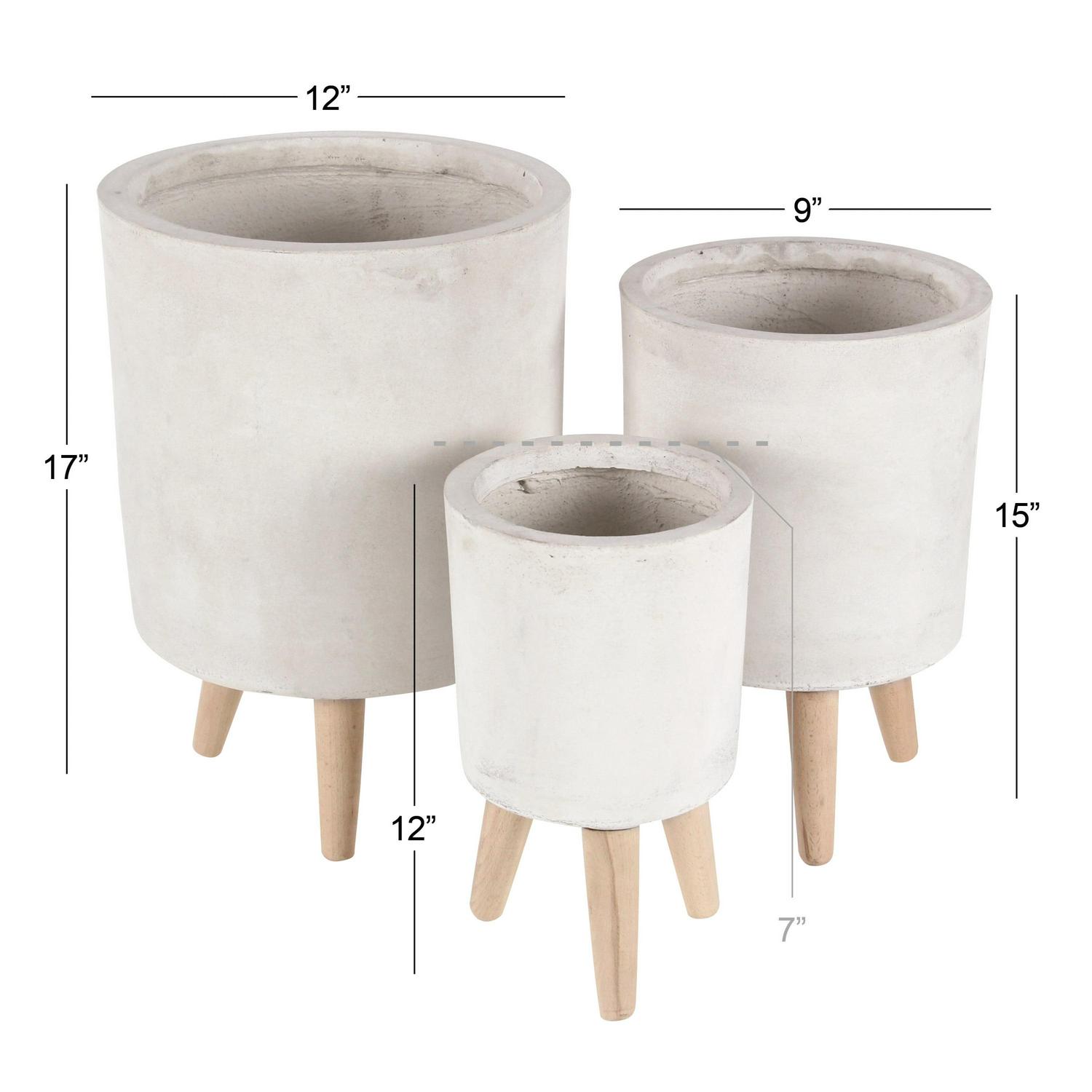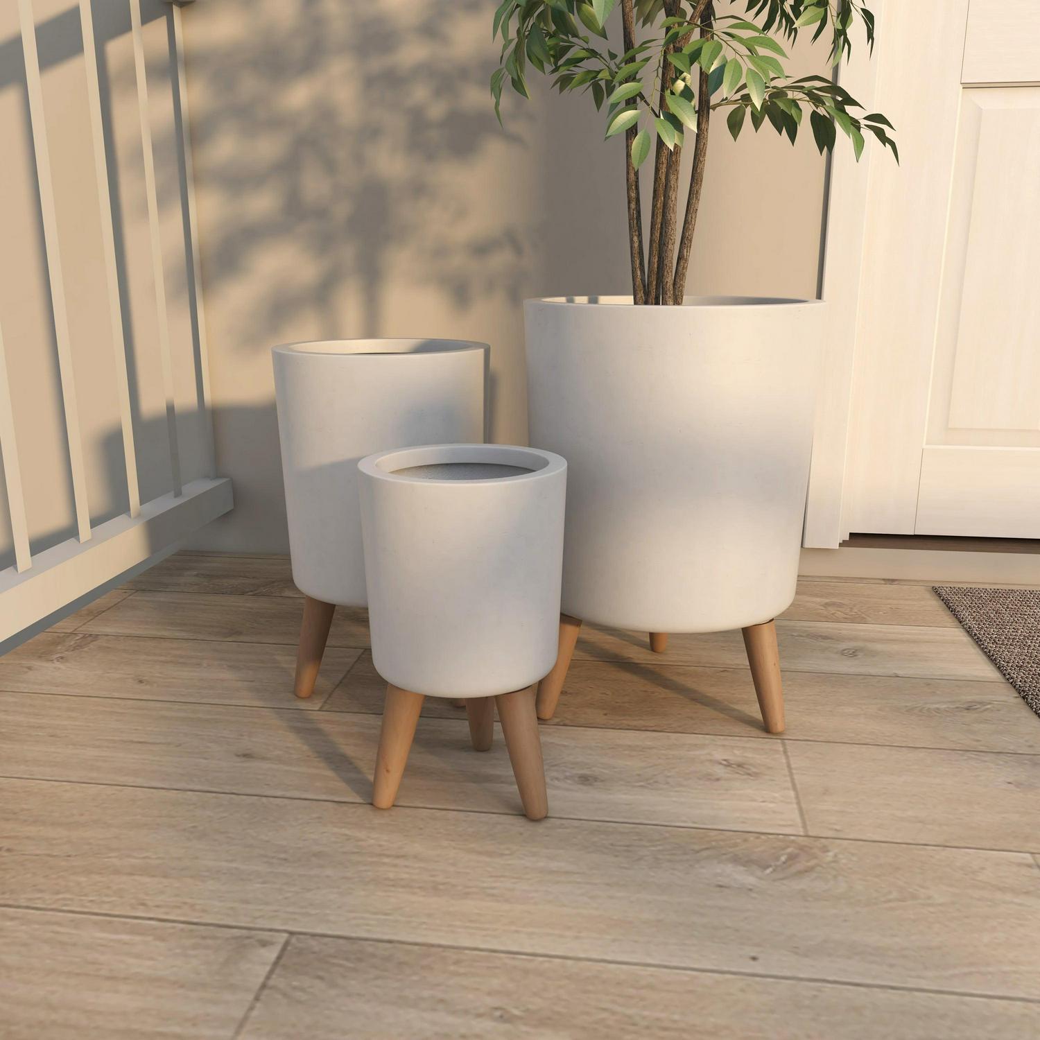 DecMode 12 , 15 , 17 H Indoor Outdoor White Fiberclay Planter with Wood Legs (3 Count)