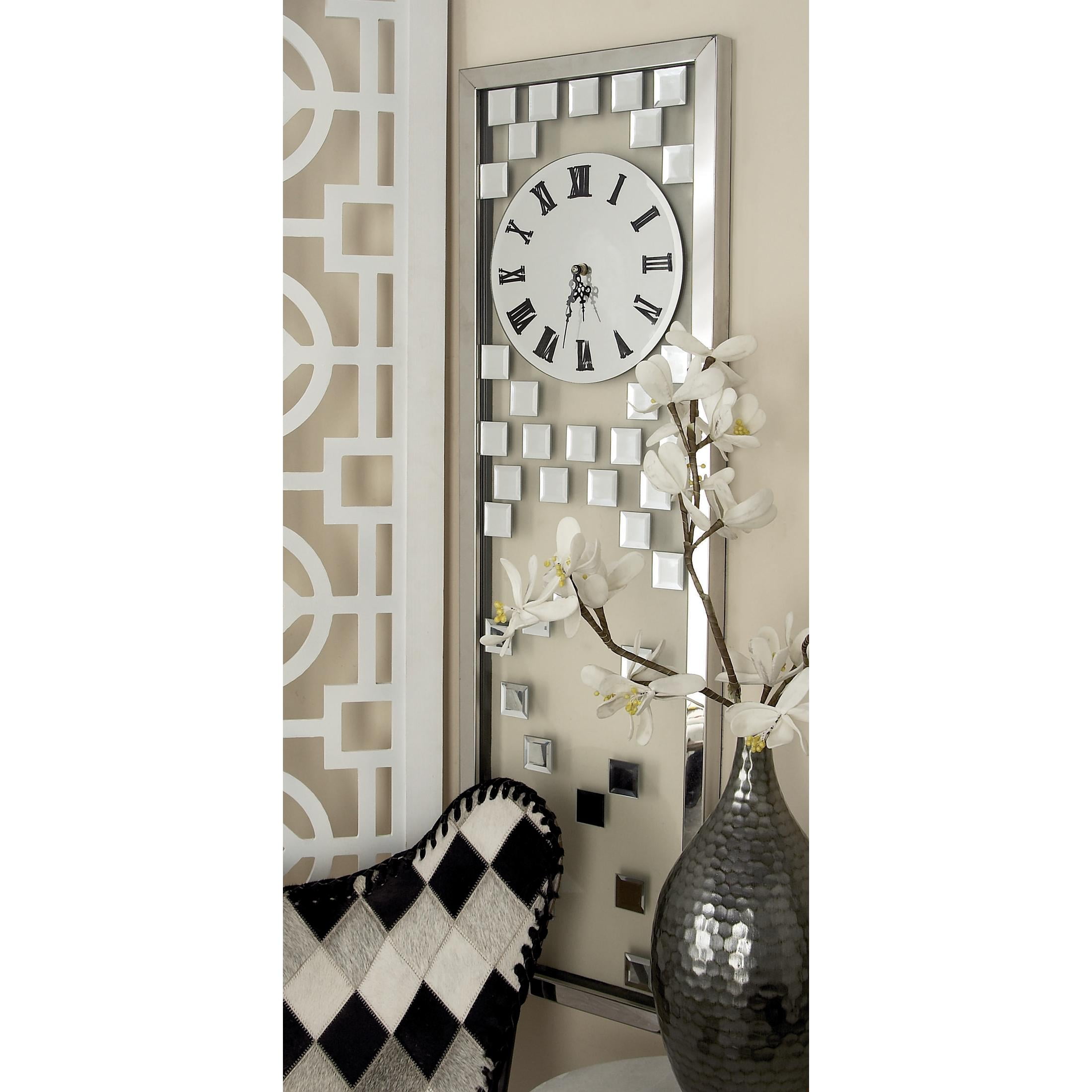 - DecMode 13″ x 42″ Silver Glass Beveled Mirrored Wall Clock makes a perfect addition to any home