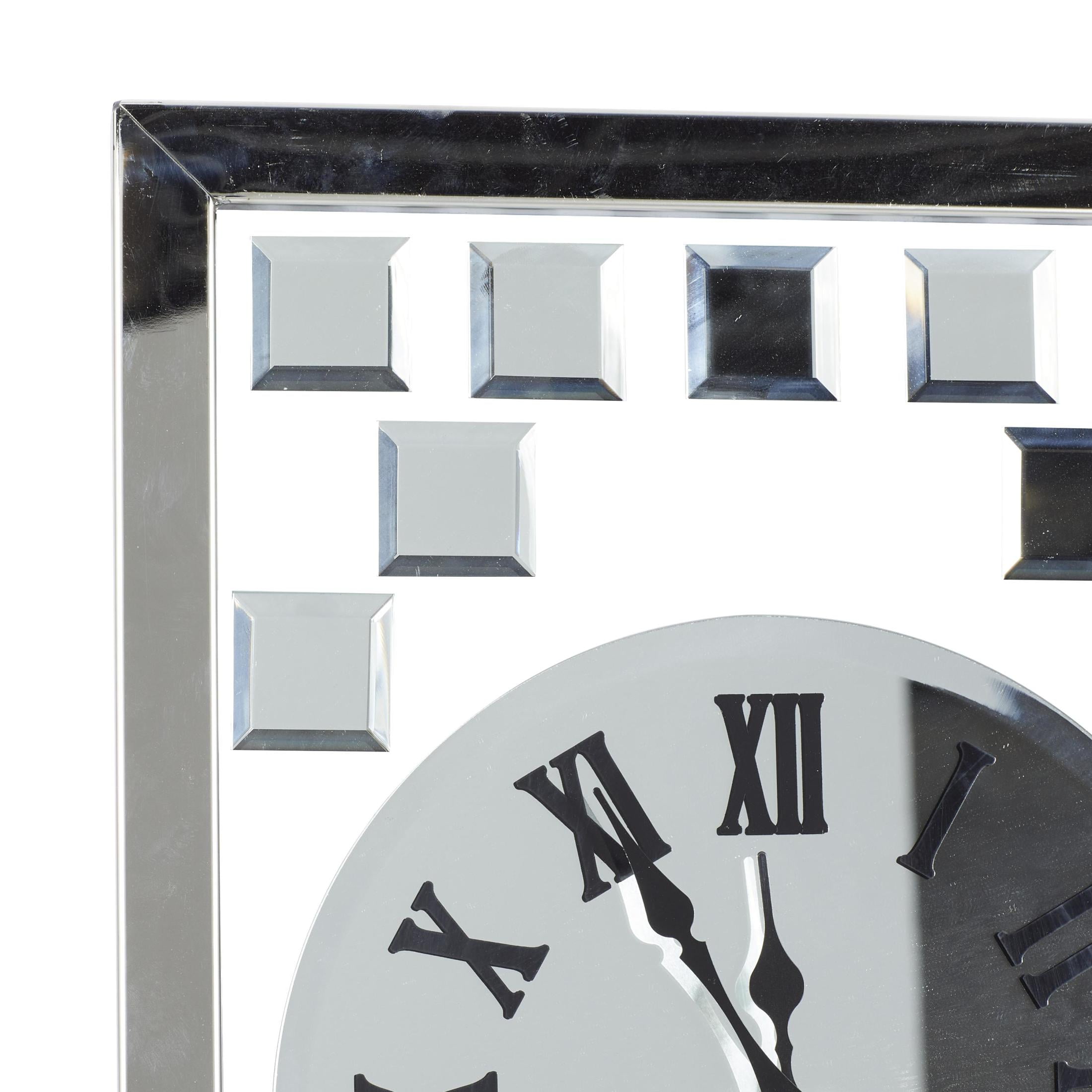 - This mirrored wall clock sports a textured silver finish that adds personality to any room