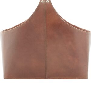 - This leather magazine holder carries a smooth reddish brown exterior and inner lining