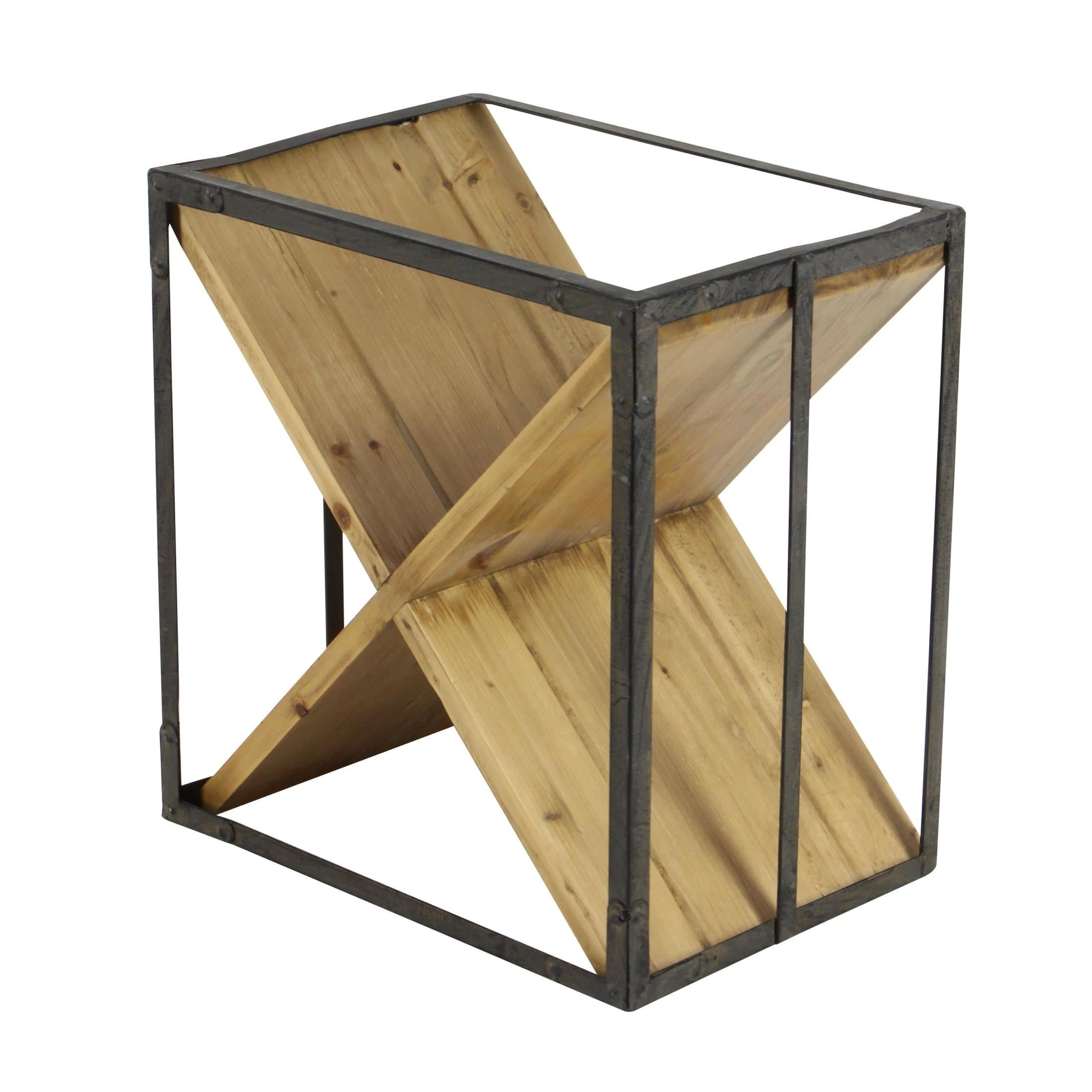 Embrace artistic expression with a style that highlights bold designs with sleek lines, neutral elements, and a minimalist aesthetic The durable frame is iron, and the two rectangular wood pieces forming an “X” are pine wood A rustic finish on the cube frame adds texture to the plain and smooth design Two rectangular wood pieces clasp each other at the middle sections to form an “X” that cradles 9 wine bottles The wine rack measures 15L x 11W x 16H inches, and weighs 8.93 lbs A rustic cube wine rack with an X-shaped design Wipe clean with a dry cloth Pine wood cuts clasping each other to form a rack for 3 wine bottles Contemporary style DecMode 15″ x 16″ Black Wood 9 Bottles Wine Rack, 1-Piece makes a perfect addition to any home
