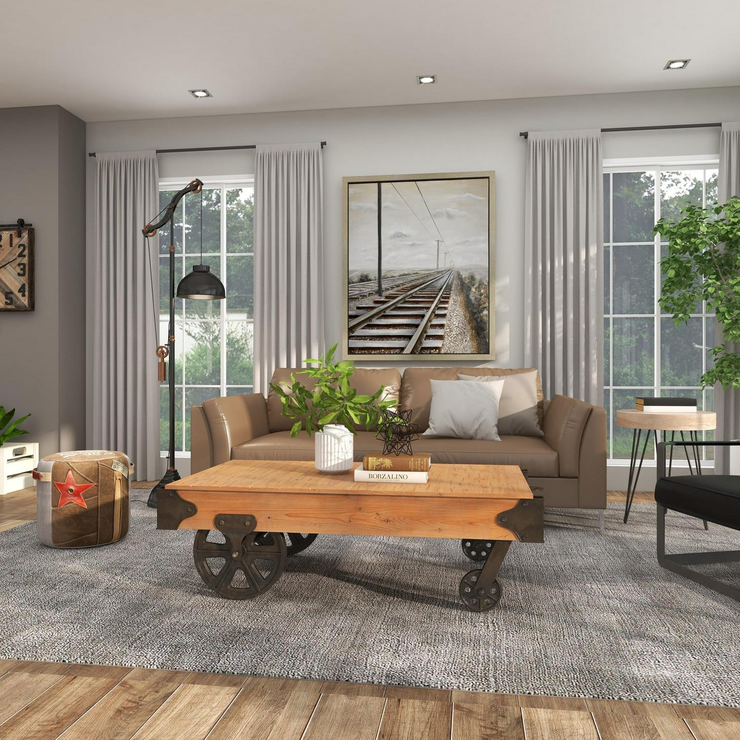 - An industrial inspired design provides a reclaimed feel to your home with a sophisticated comfort