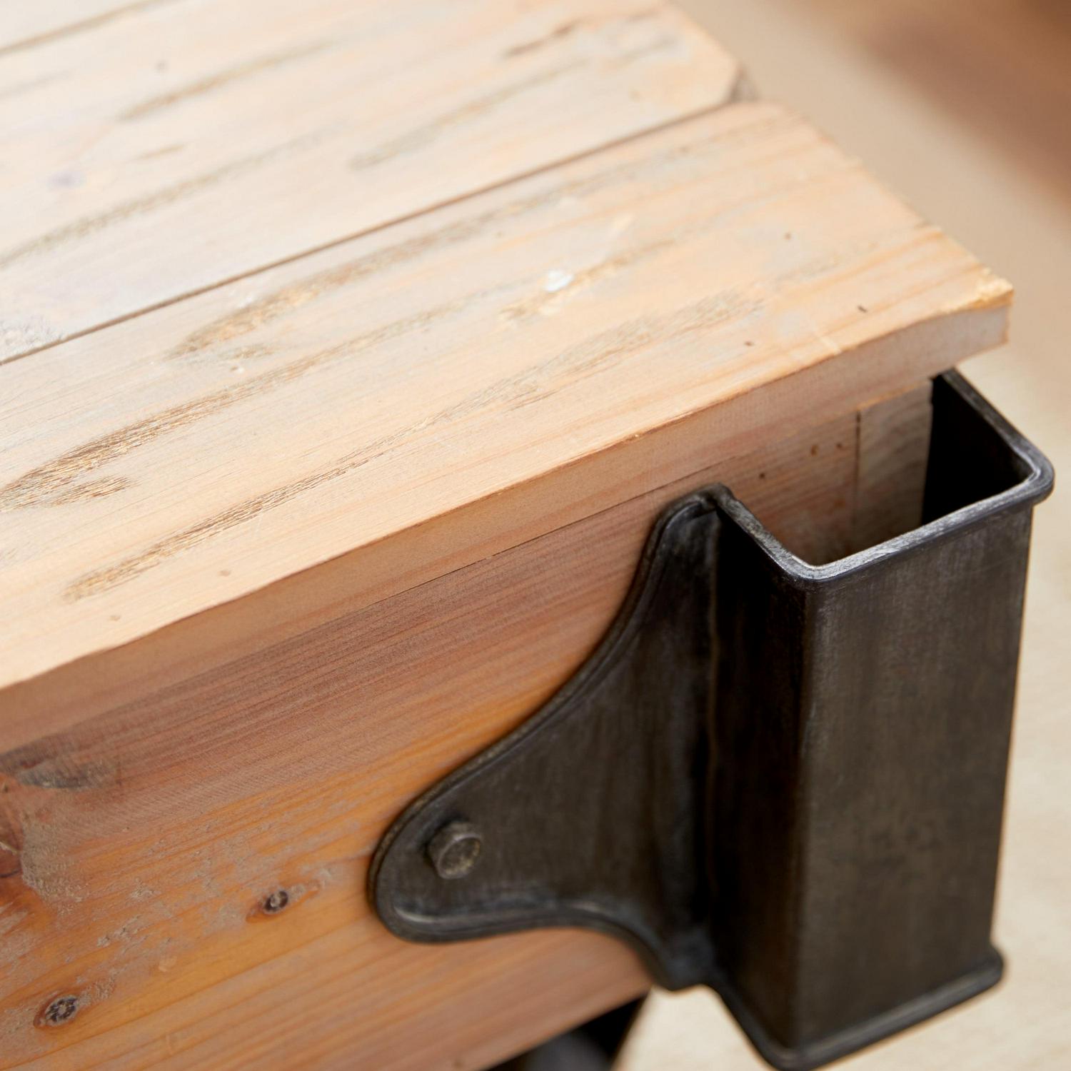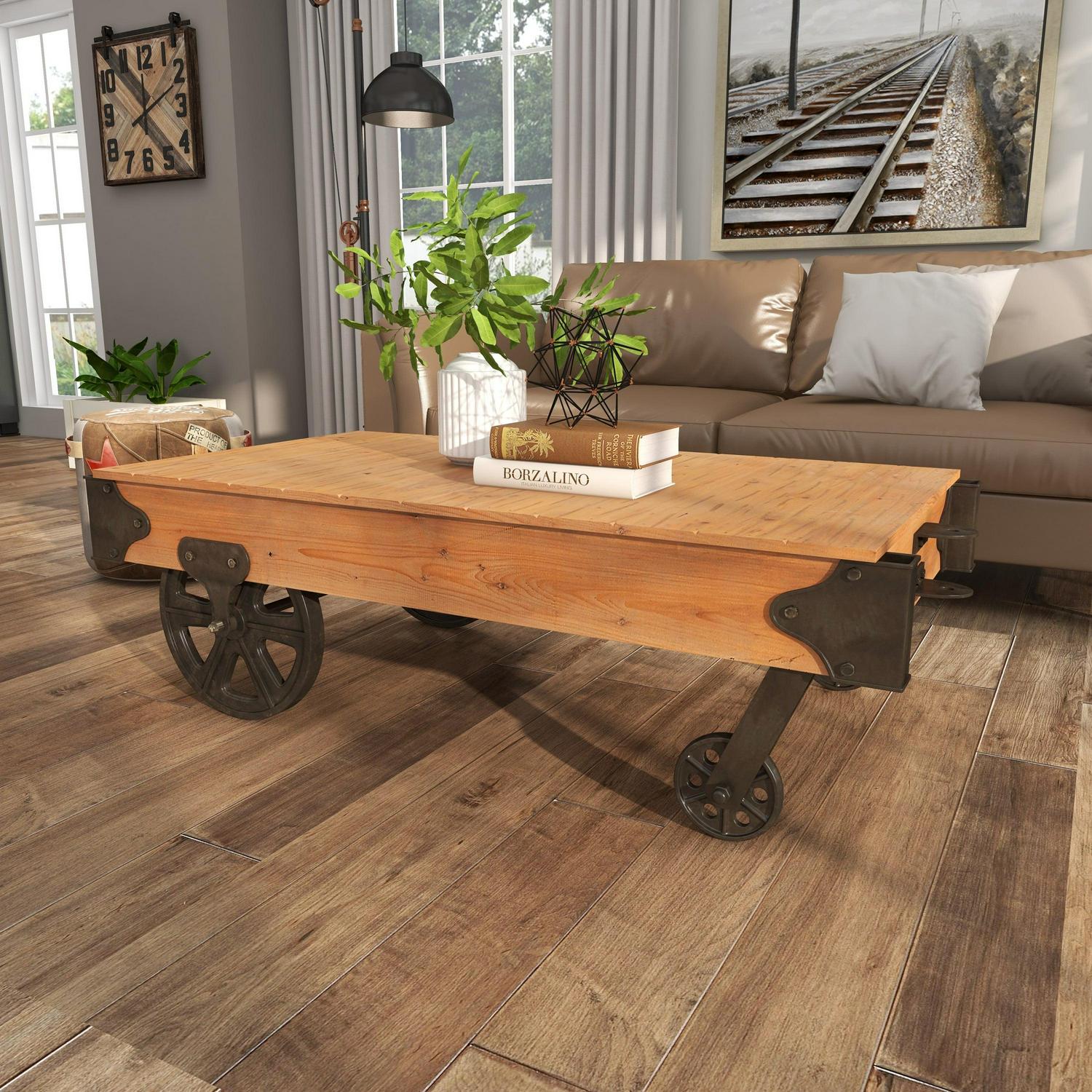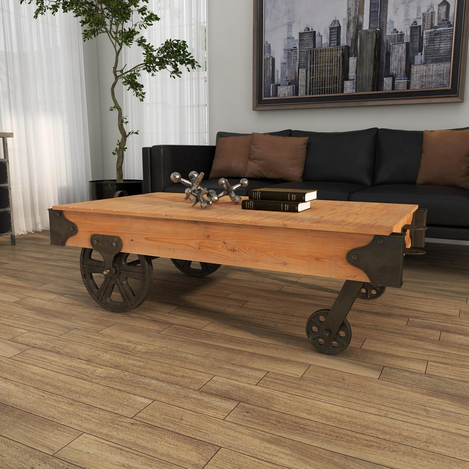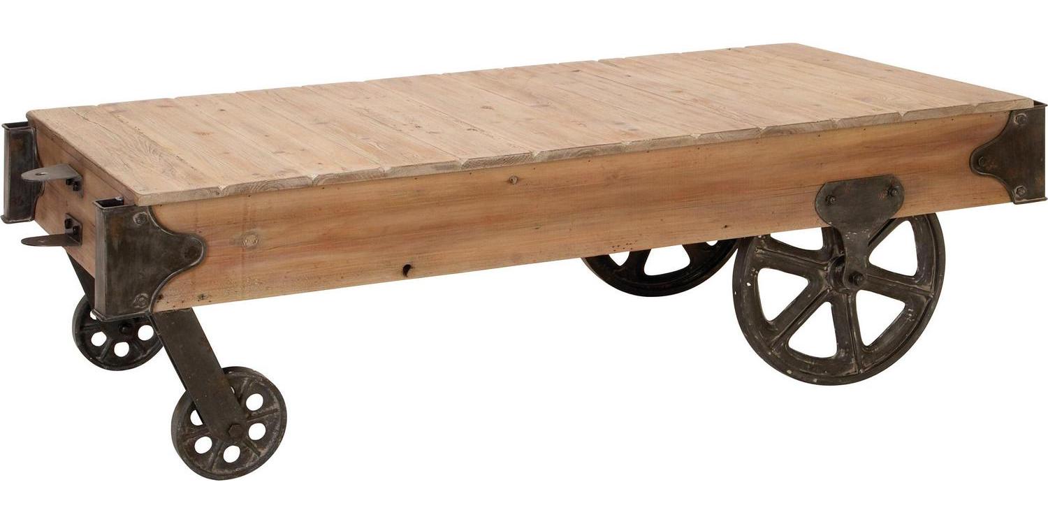 - Low coffee table cart is a medley of solid fir wood and metal