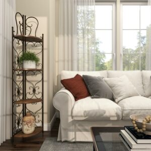 – DecMode 18″ x 66″ Brown Metal Scroll Tall Folding 2 Drawers and 4 Shelves Bakers Rack, 1-Piece makes a perfect addition to any home