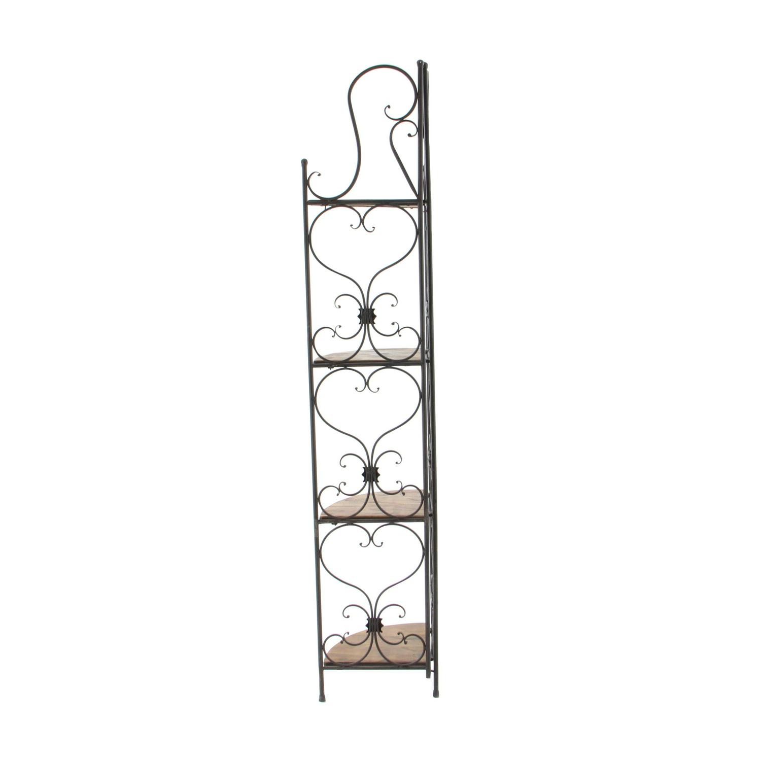 DecMode 18 x 66 Brown Metal Scroll Tall Folding 2 Drawers and 4 Shelves Bakers Rack, 1-Piece
