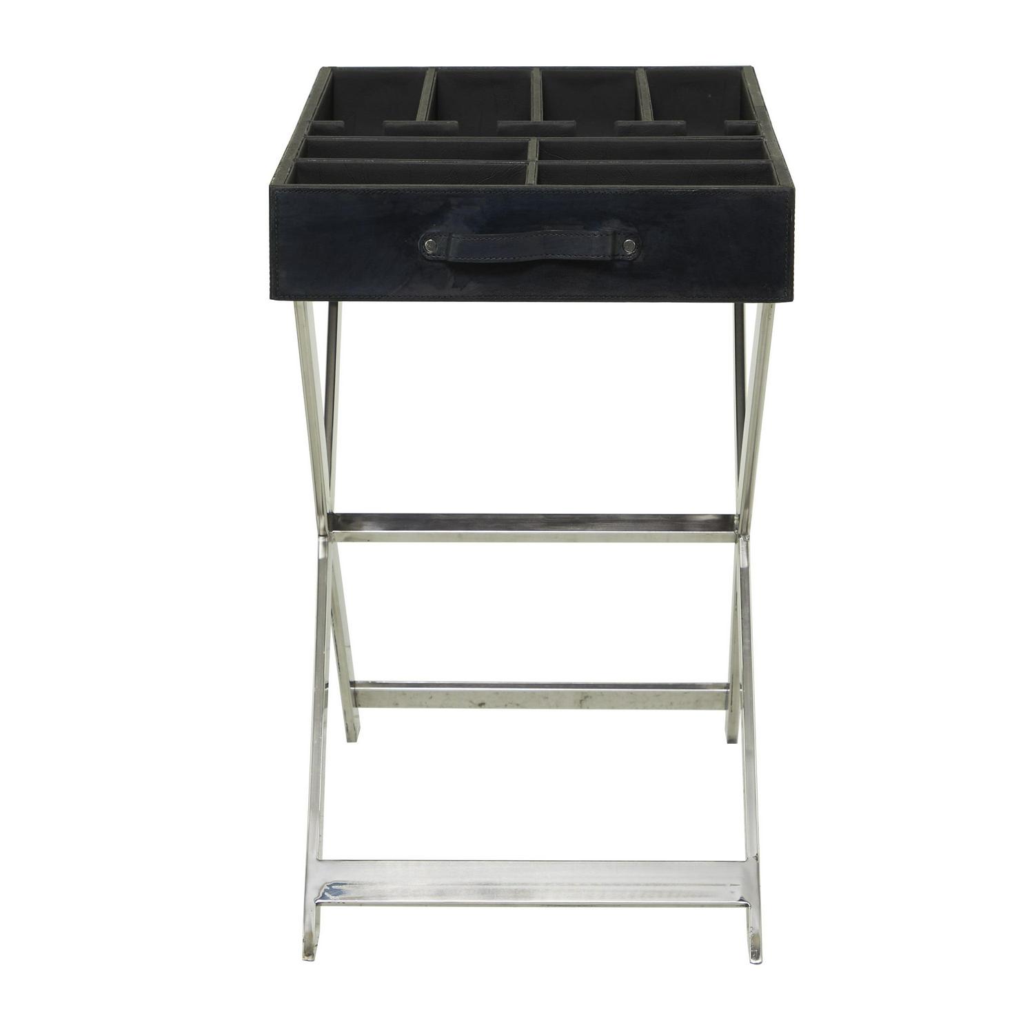 DecMode 24″ x 26″ Black Stainless Steel Tray Table Style 4 Bottles Wine Holder with Stand and Storage Space, 1-Piece is a unique addition to your stylish home. Showoff your bottle beverage collection in the most elegant way with this wine holder. Looks stylish in your living room or kitchen as a way to display and serve your favorite wines. This modern-inspired wine rack provides you the perfect wine bottle storage solution with sophisticated style and convenient display that will blend seamlessly into any living space. This item ships in 1 carton. Please note that this item is for decorative purposes only and is not food safe. Stainless steel wine holder makes a great gift for any occasion. Suitable for indoor use only. Leather and hair on hide are natural products, and therefore no two will be alike. There may slight variations in pattern, natural blemishes, colors, and overall aesthetic of the product. Maximum weight limit is 10 lbs. Made in India. This is a single black colored wine bottle caddy. Modern style. Black wine holder can hold 4 average wine bottles.