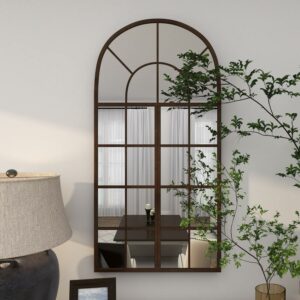 – DecMode 24″ x 48″ Brown Window Pane Inspired Wall Mirror with Arched Top makes a perfect addition to any home