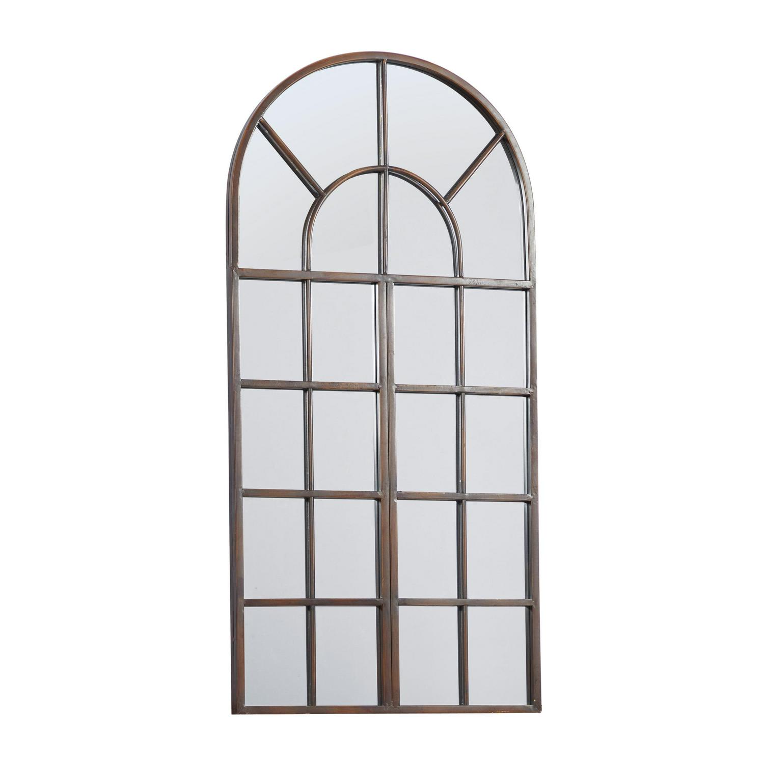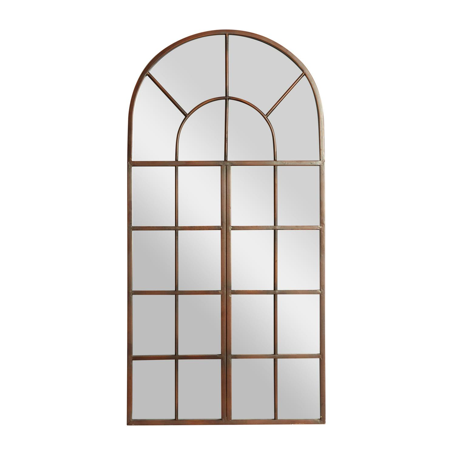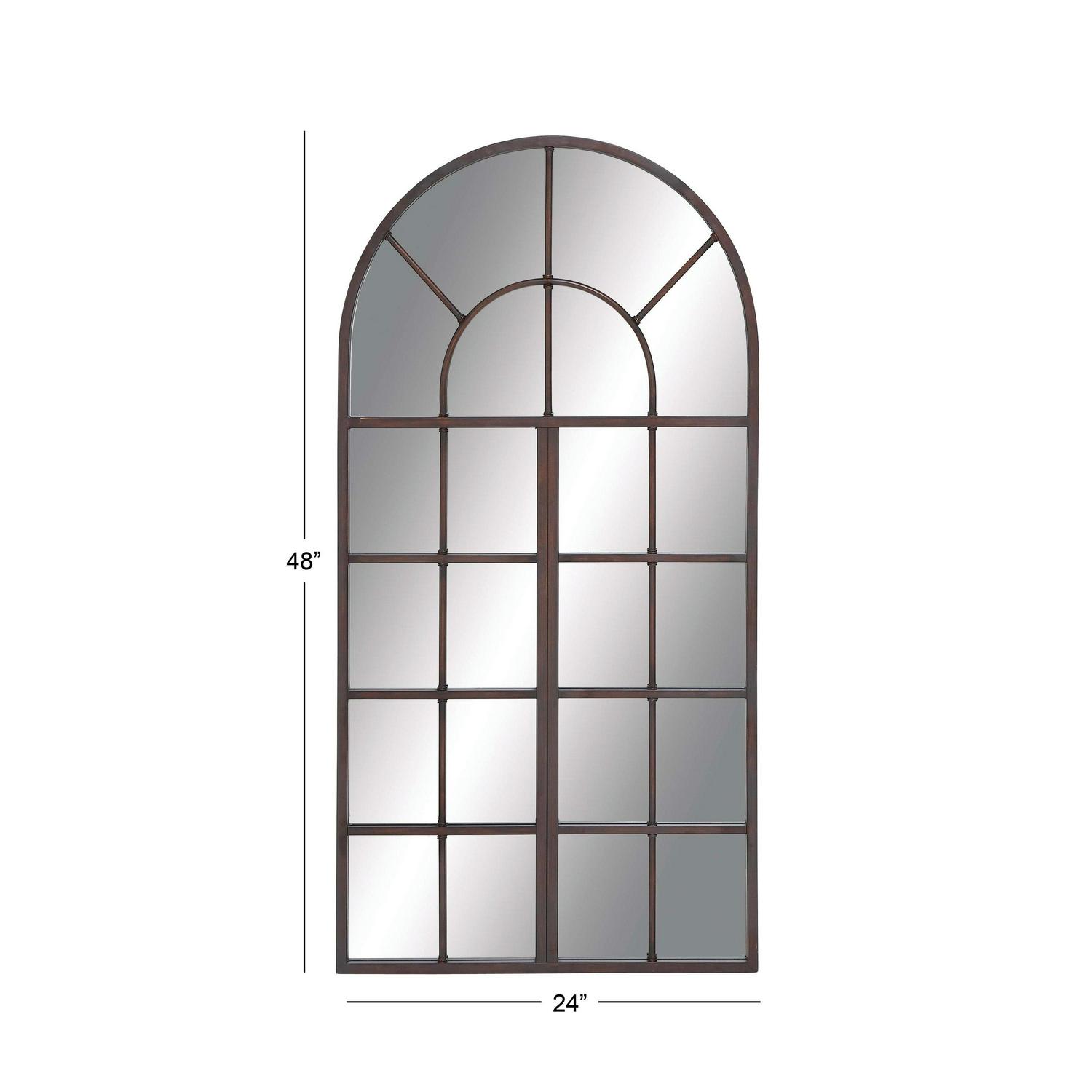 DecMode Brown Metal Arched Window Pane Room Wall Mirror, 24″ x 2″ x 48″