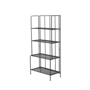 DecMode 24″ x 49″ Black Metal Indoor Outdoor Tall Folding 4 Shelves Bakers Rack, 1-Piece is a unique addition to your stylish home. A storage piece that is spacious to keep your valuable organized and safe. Appreciate their design best against solid-colored backgrounds. This metal 4-tier baker s rack for home is a convenient garden accent furniture that adds space while keeping you organized. Designed with felt or rubber stoppers at the base that prevent scratching furniture and table tops, as well as sliding around. This item ships in 1 carton. Suitable for indoor and outdoor use. This item ships fully assembled in one piece. Maximum weight limit is 40 lbs. This is a single black colored display shelf. Iron bakers rack features 4 shelves. Contemporary style.