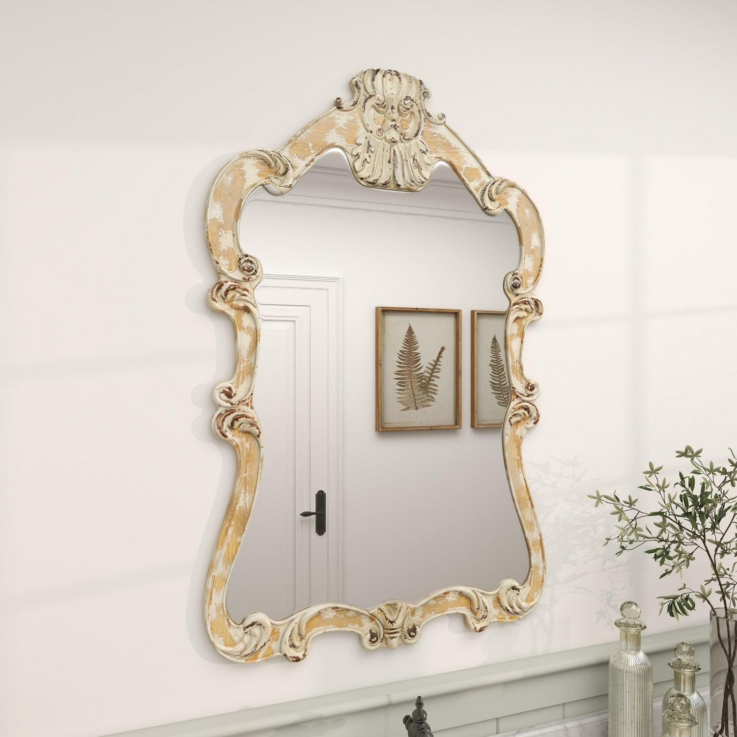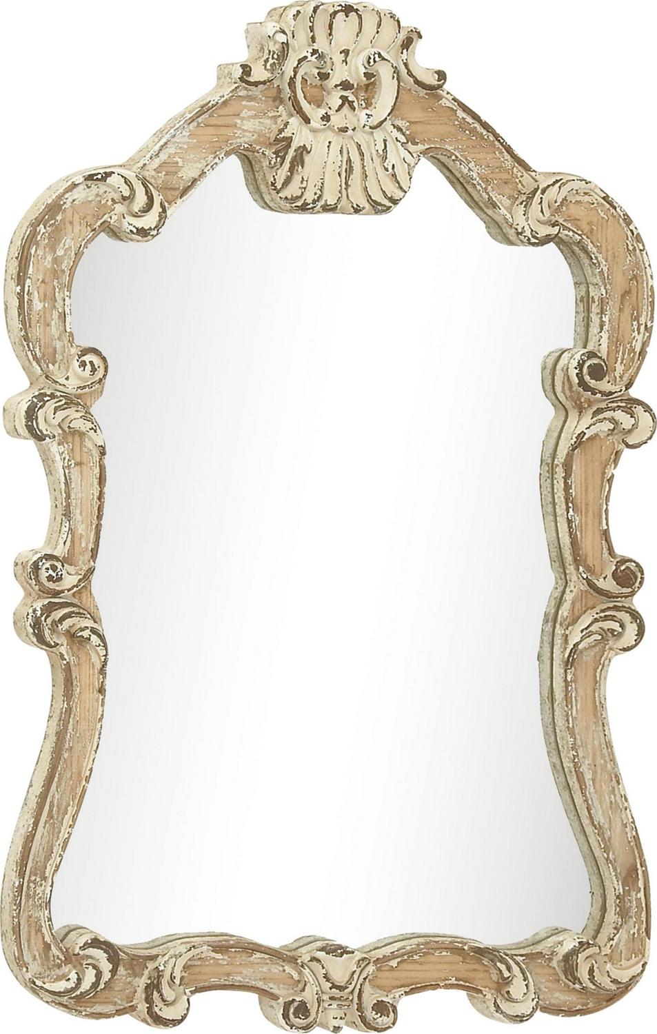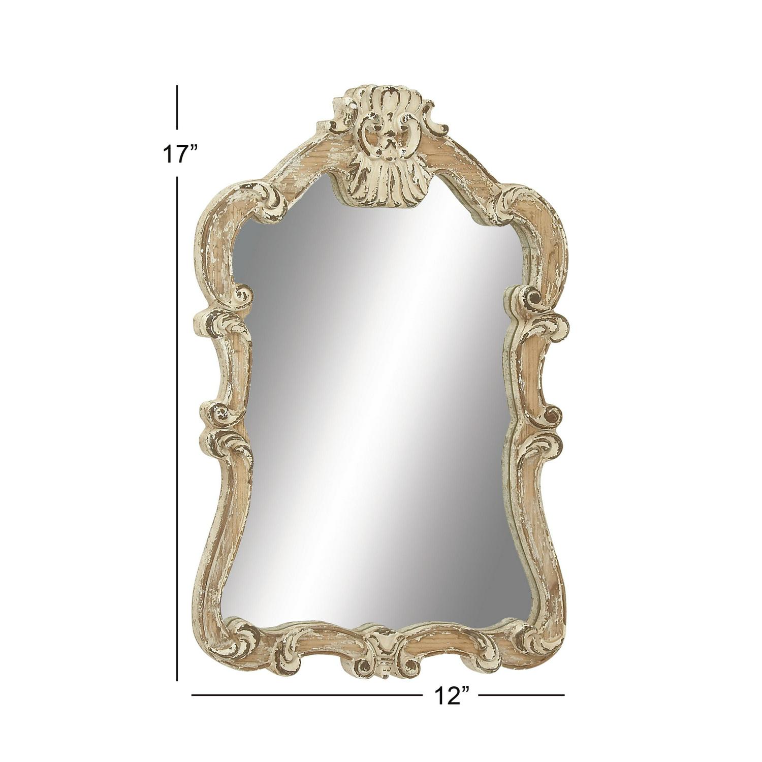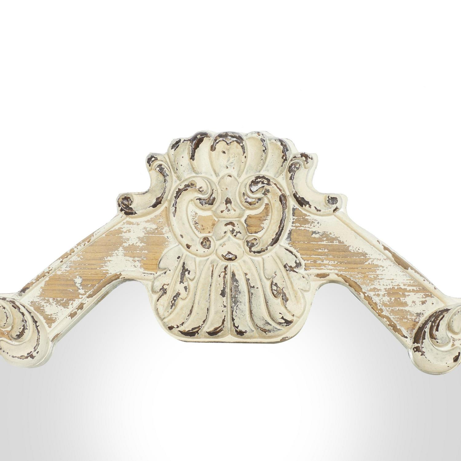 DecMode 25 x 39 Cream Carved Acanthus Wall Mirror with Arched Top and Distressing