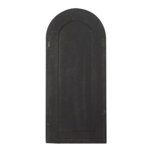 DecMode 26″ x 59″ Gold Window Inspired Wall Mirror with Arched Top is a unique addition to your stylish home. Use this window pane arched floor mirror to create the illusion of space inside a small room. This item ships in 1 carton. Can be hung vertically using the D-rings on the back; nails and screws not included. Suitable for indoor use only. This item ships fully assembled in one piece. This is a single gold colored entryway mirror. Farmhouse style.