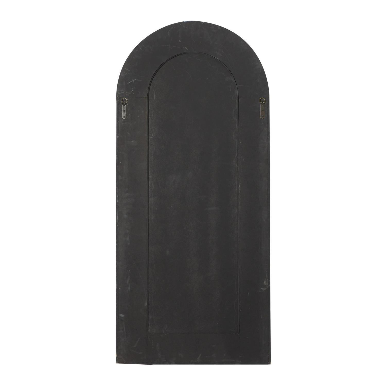 - This arched window floor mirror is carved with ornate traditional details on its wooden frame