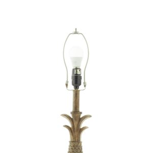 - This brown lamp has an elongated pineapple-shaped base and bell shaped shade