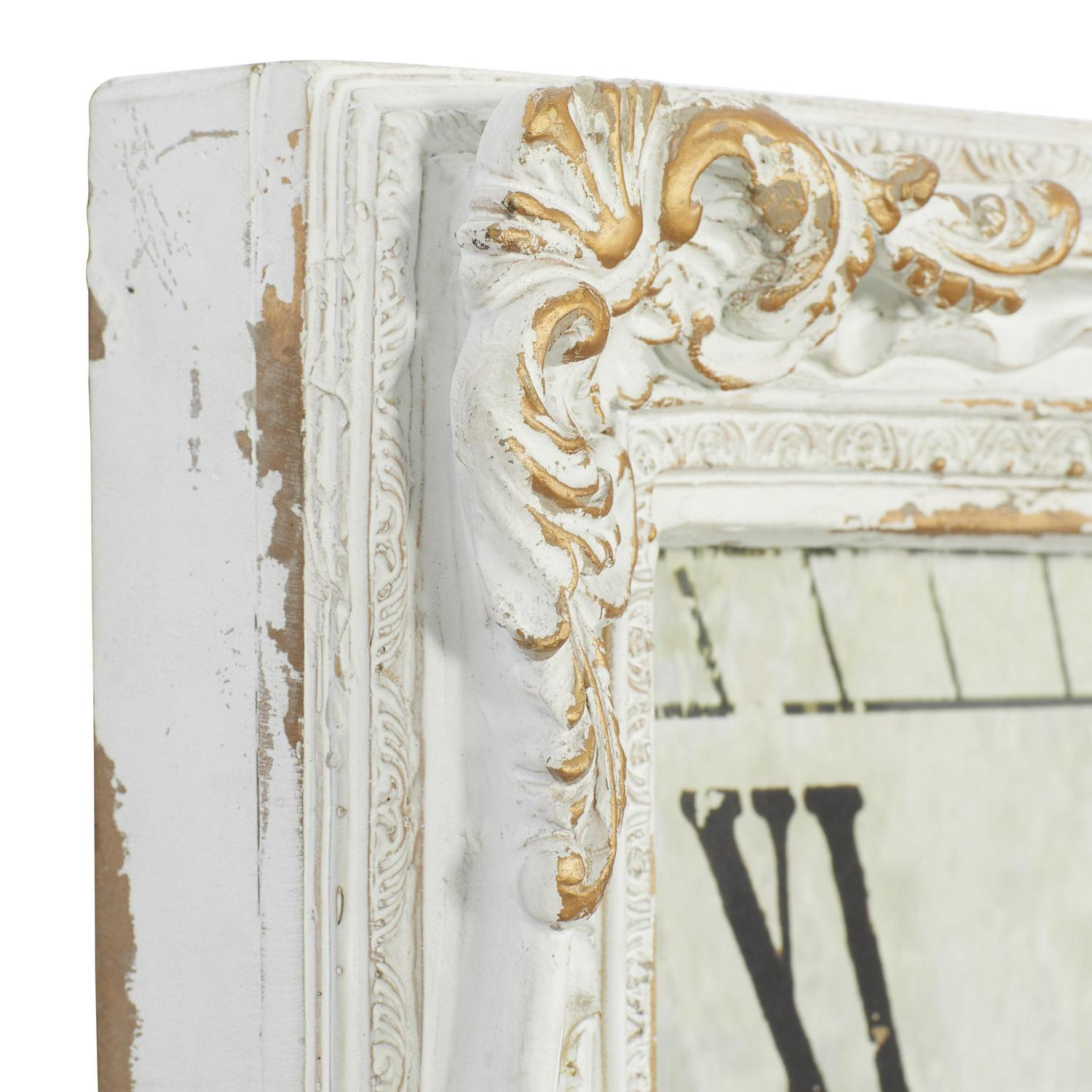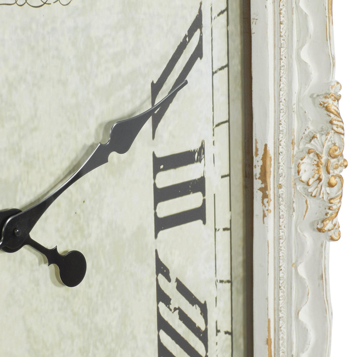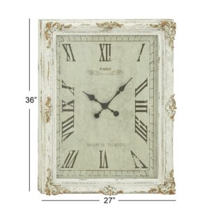 DecMode 27 x 36 White Wood Floral Carved Acanthus Wall Clock with Distressing