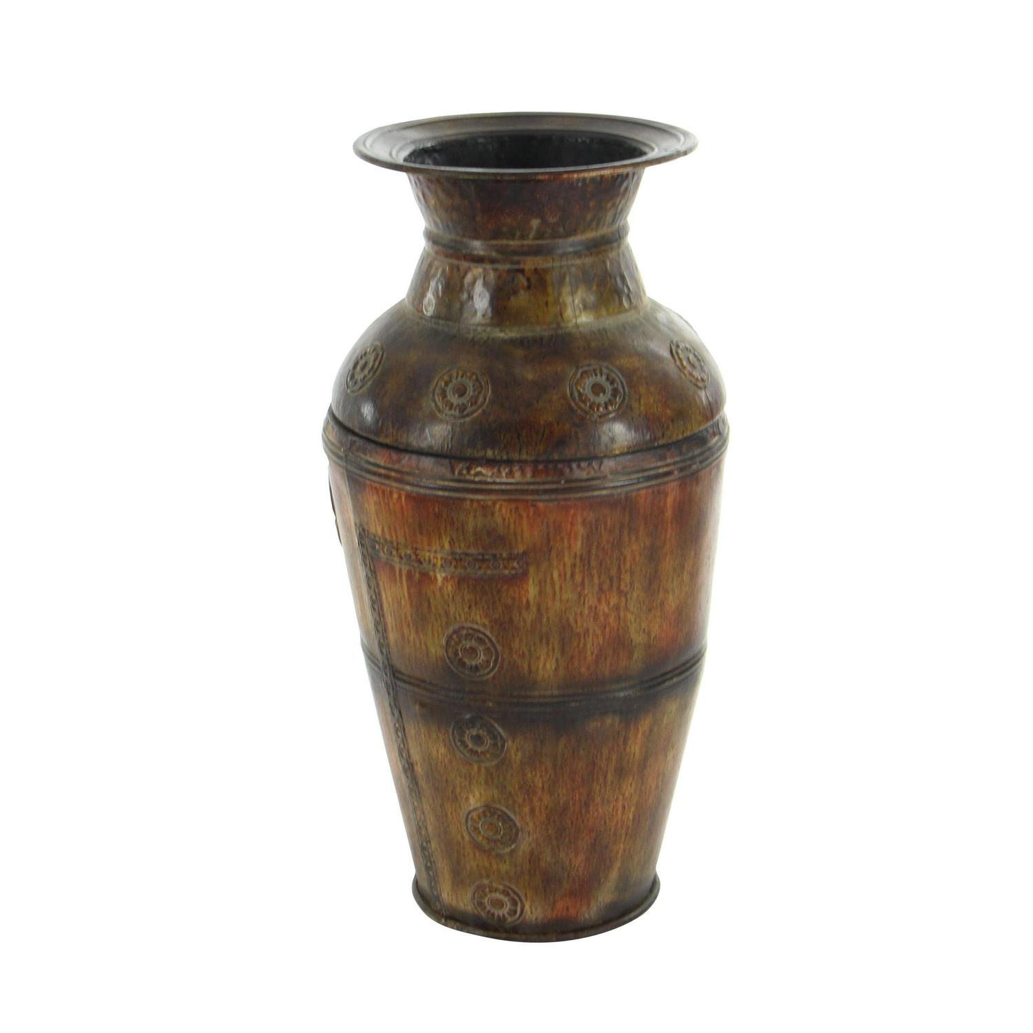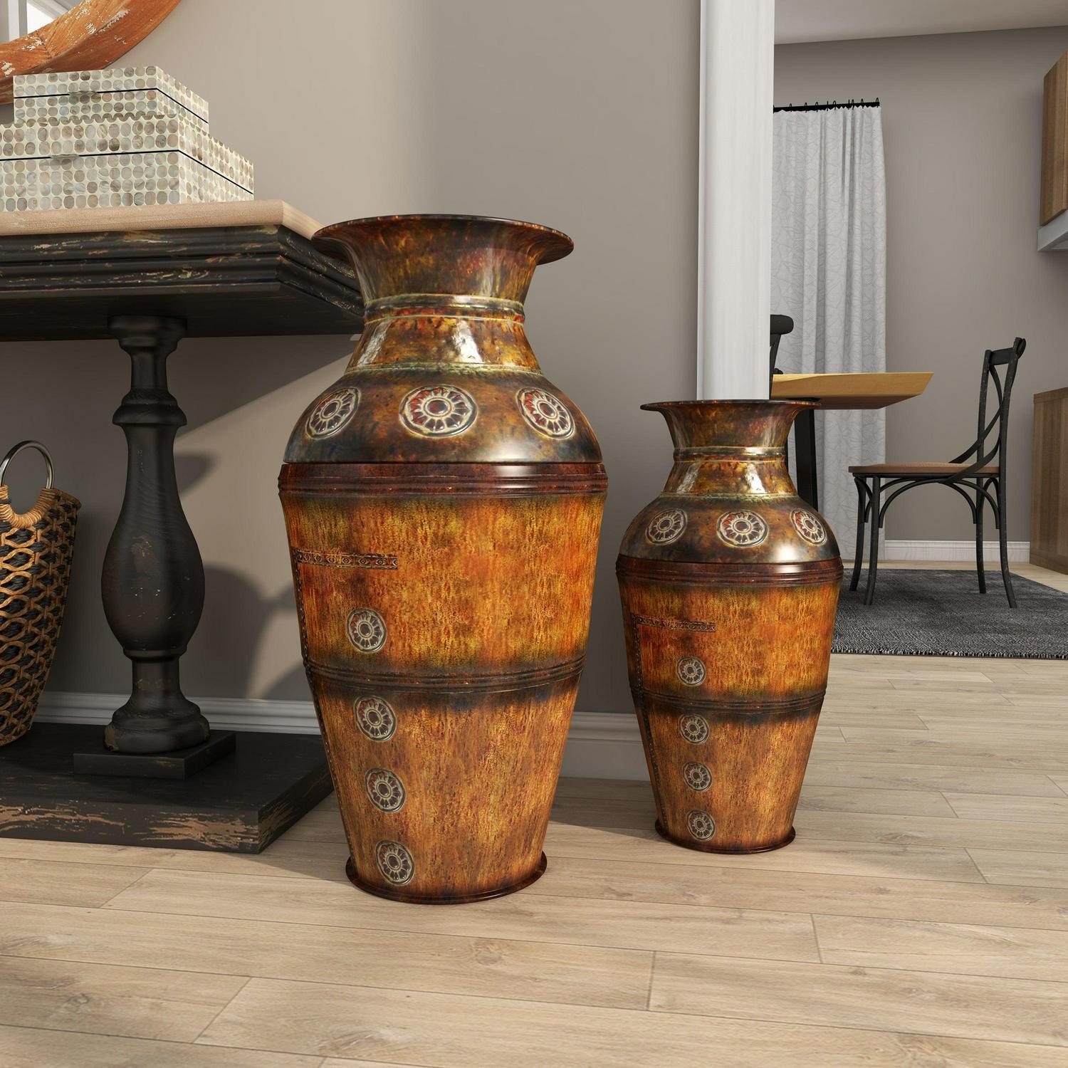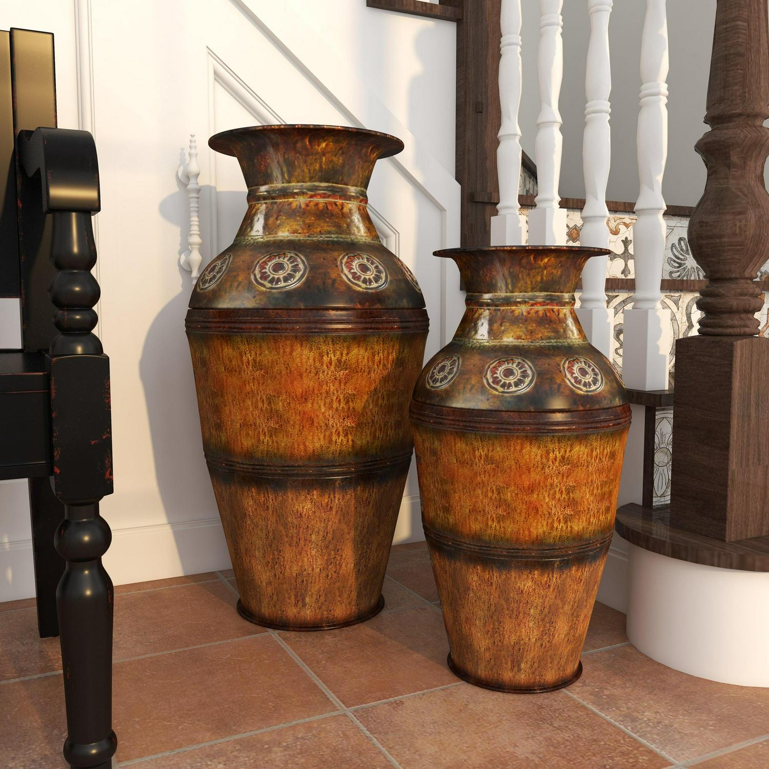 DecMode 29 , 22 H Indoor Outdoor Large Brown Metal Vase with Floral Relief, Set of 2