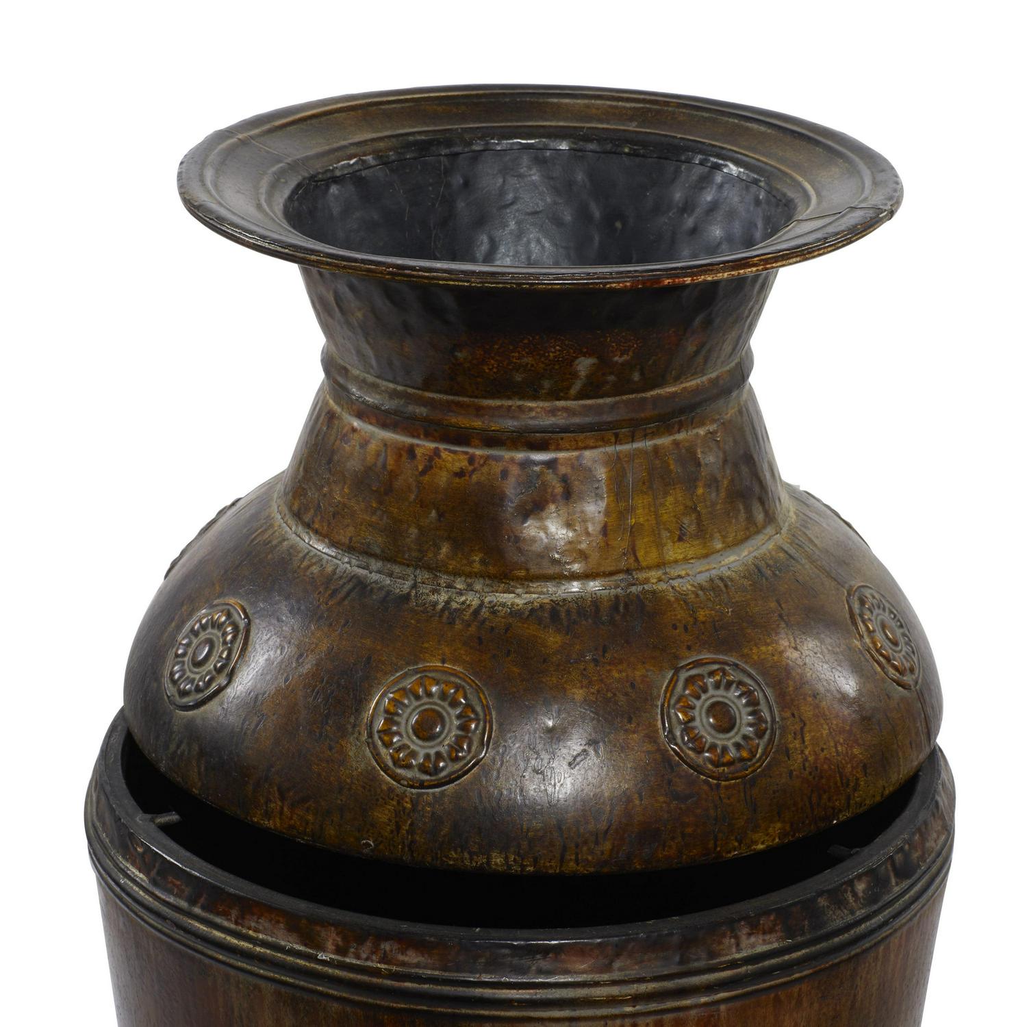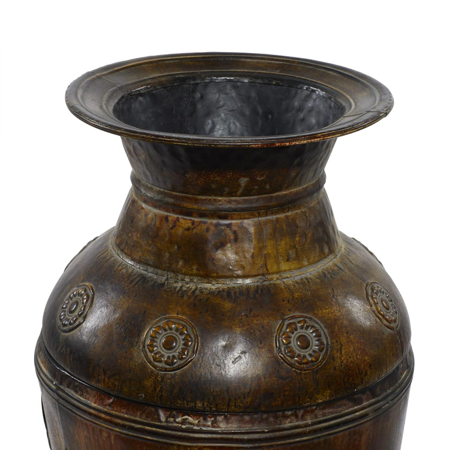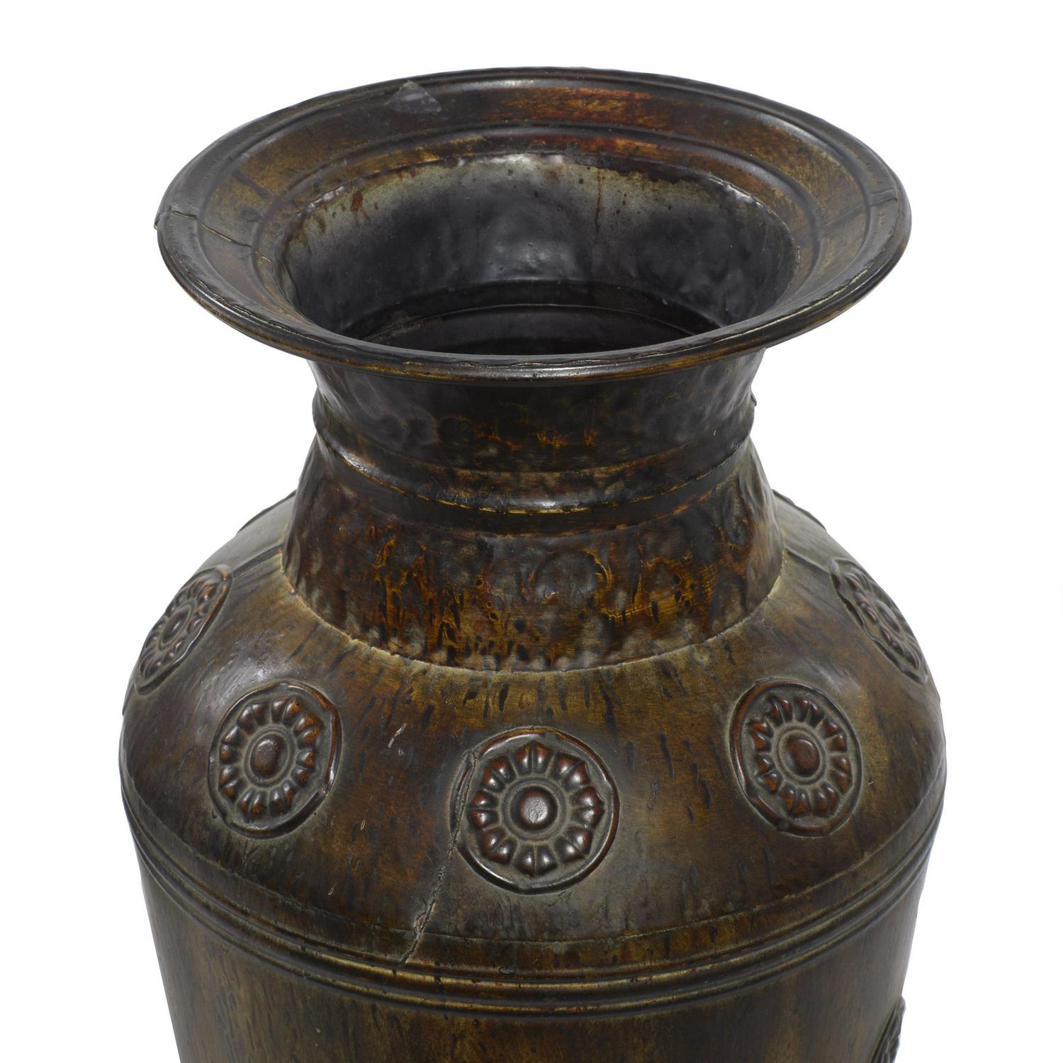 DecMode 29 , 22 H Indoor Outdoor Large Brown Metal Vase with Floral Relief, Set of 2