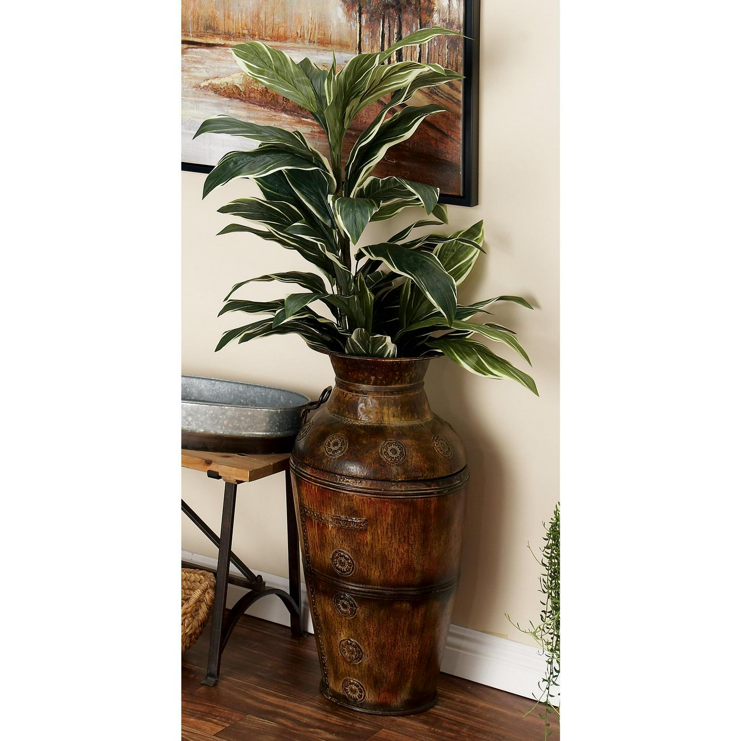 – DecMode 29″, 22″H Indoor Outdoor Large Brown Metal Vase with Floral Relief, Set of 2 makes a perfect addition to any home