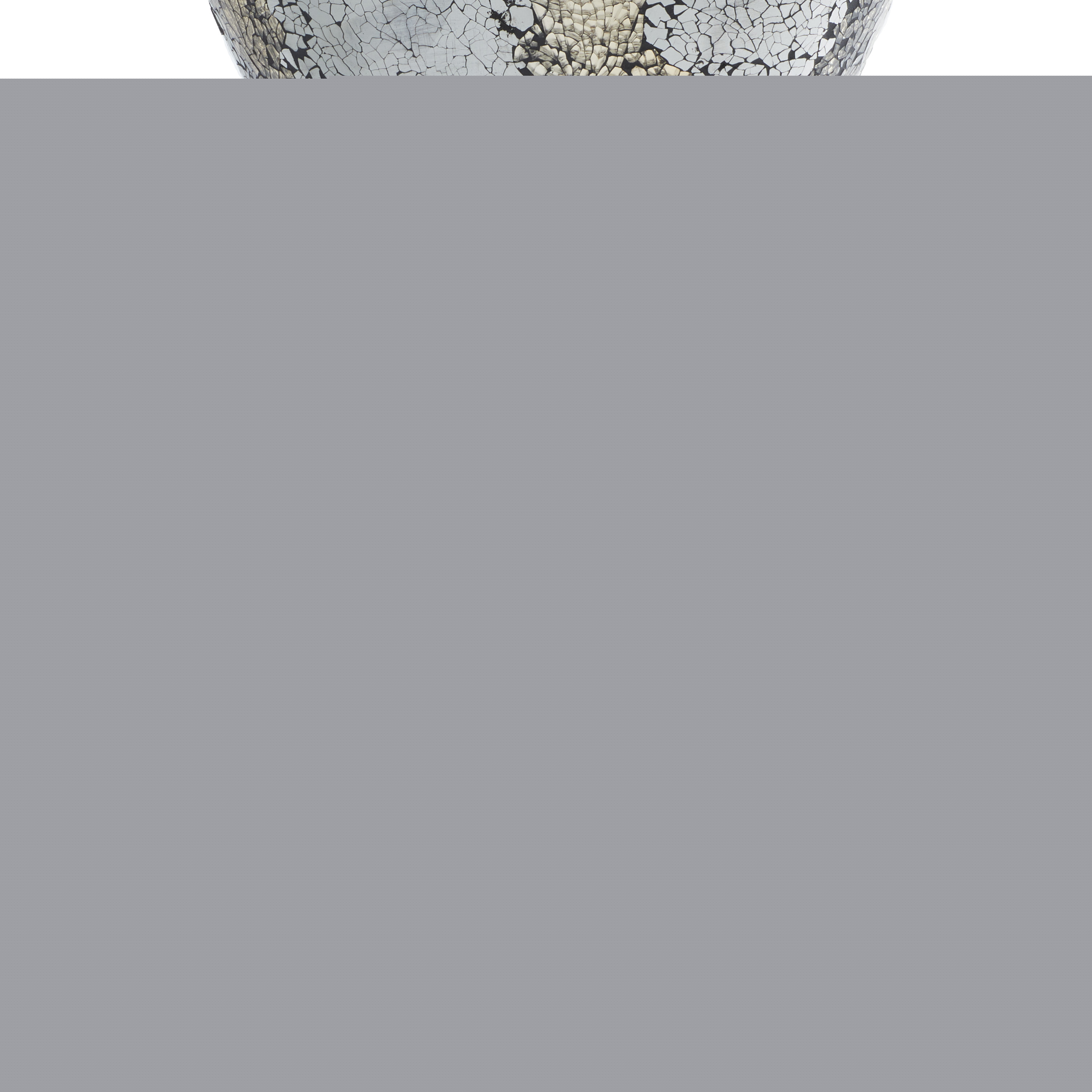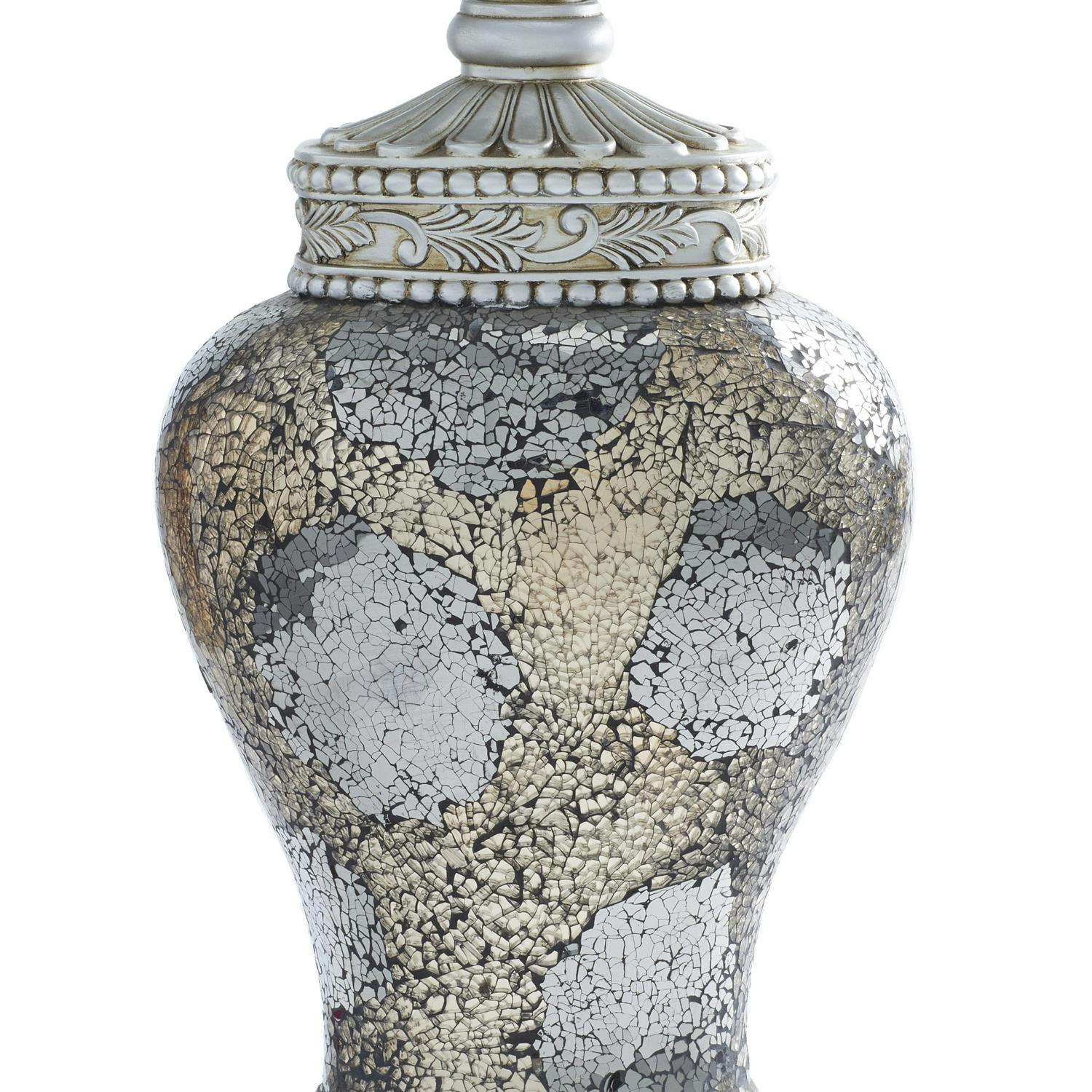 – Features bell-shaped shade and urn-inspired body with mosaic glass inlay