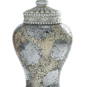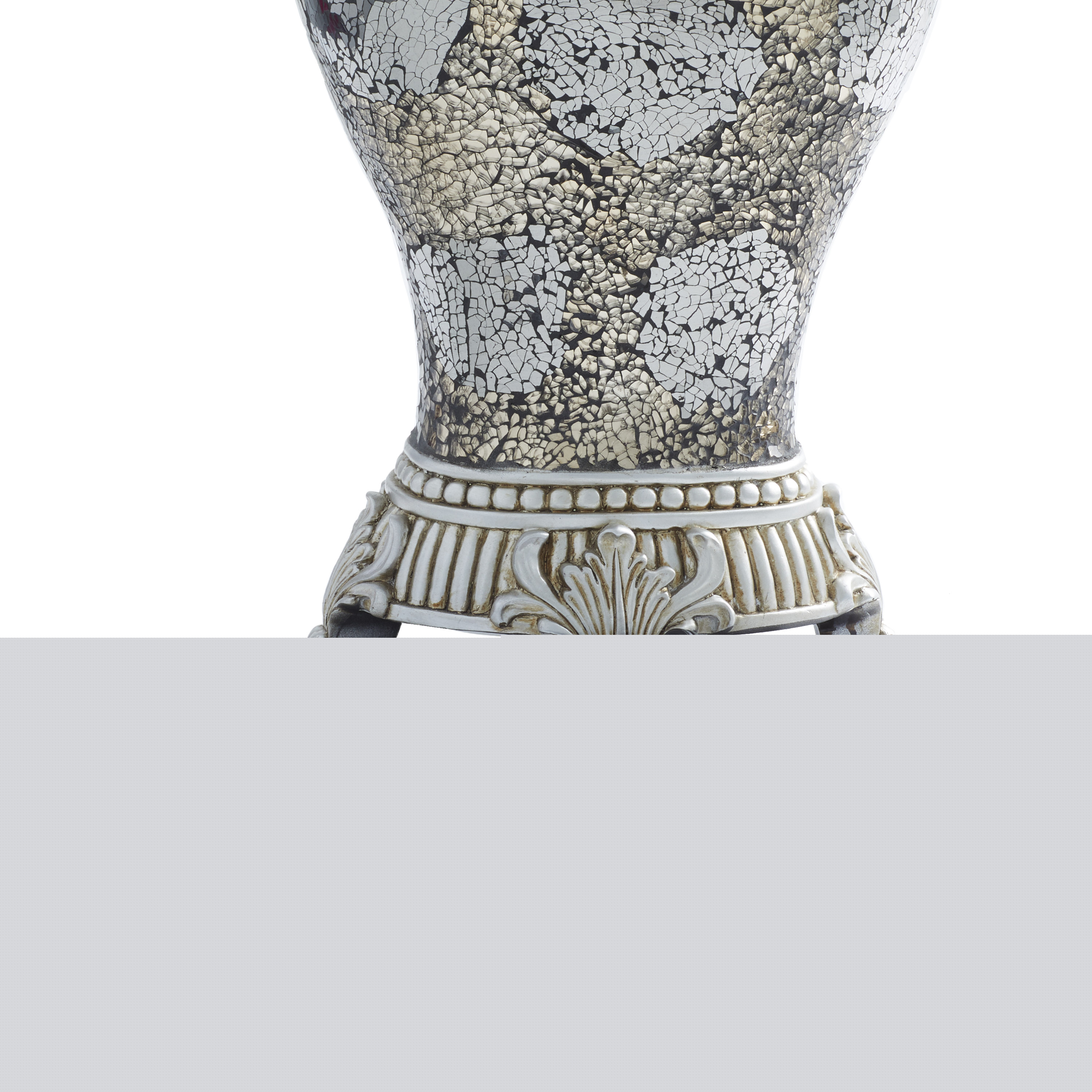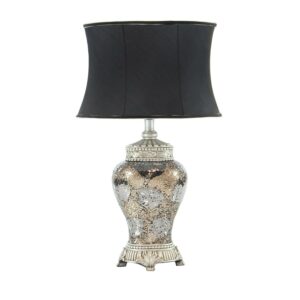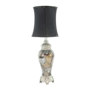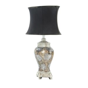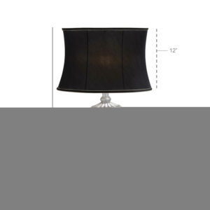 DecMode 30″ Silver Table Lamp with Black Fabric Shade is a unique addition to your stylish home. Surprise your guests with this stunning table lamp that serves both decorative and functional purposes. Ideal to place on any Tuscan-inspired accent table in your lobby, living room, library, kitchen, or bedroom. Requires 1 60W Type A E26/Medium (Standard) bulb. This item ships in 1 carton. Comes with a 26″ cord length. Suitable for indoor use only. This item ships fully assembled in one piece. Table lamp comes with a black bell shaped shade that measures 18 x 11 x 12 inches. Includes a push switch. This is a single silver colored accent lamp. Glam style.