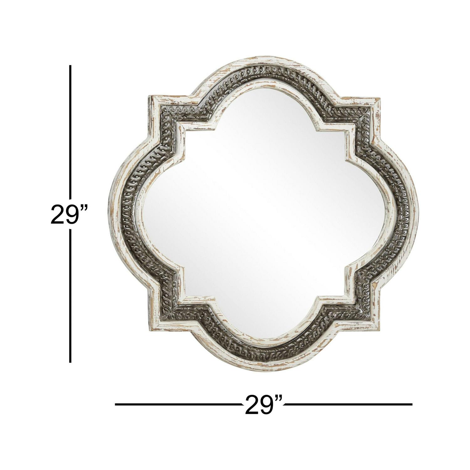 - DecMode 30″ x 30″ White Quatrefoil Wall Mirror makes a perfect addition to any home