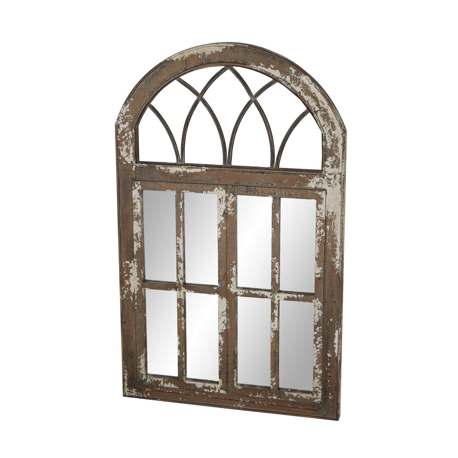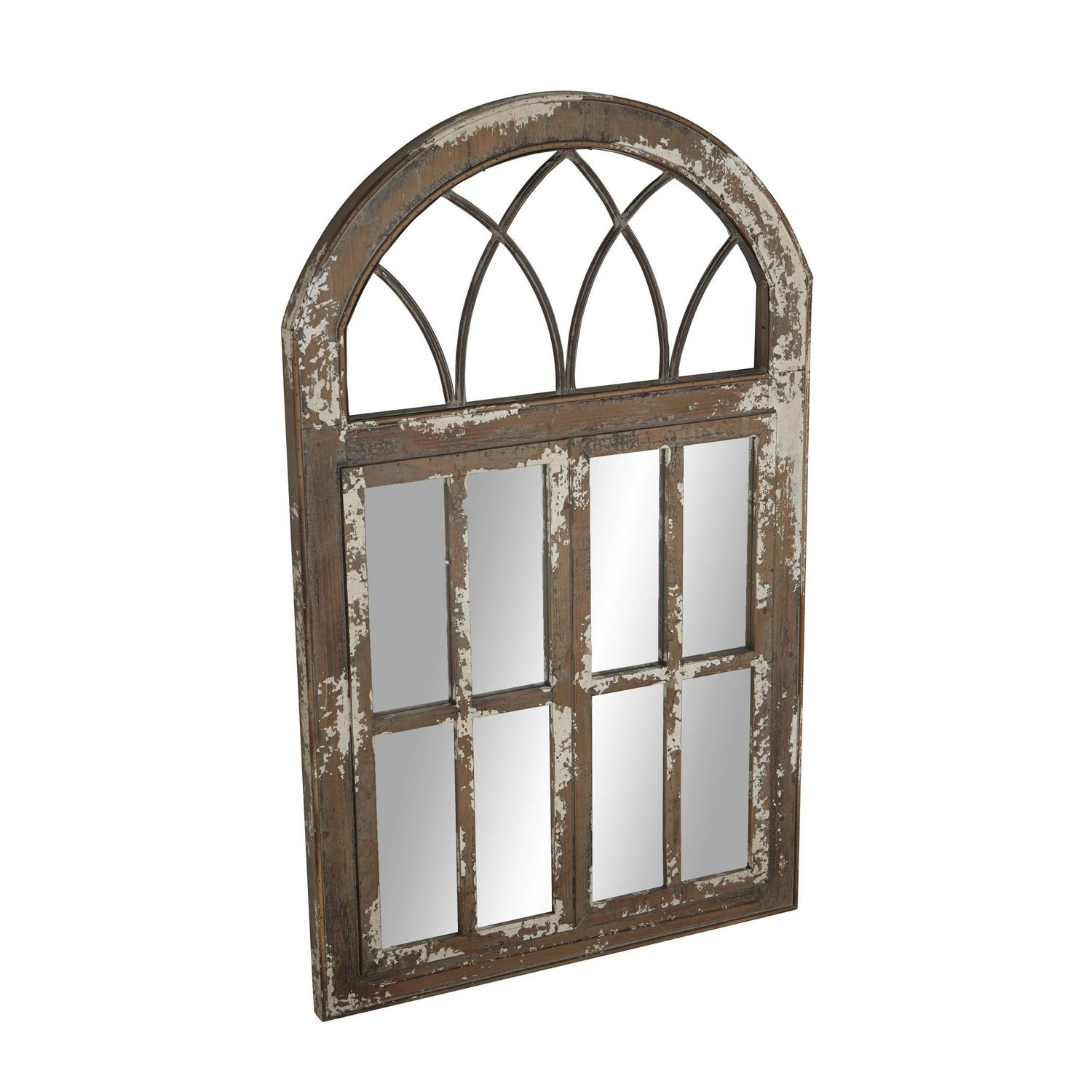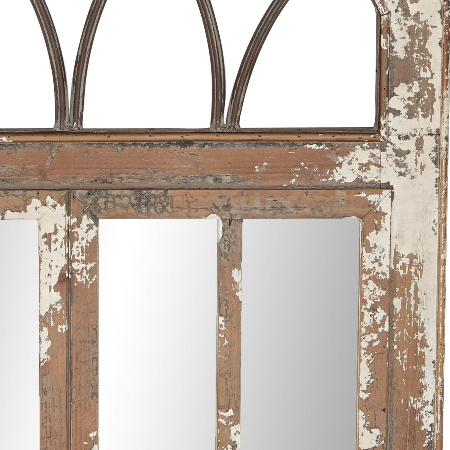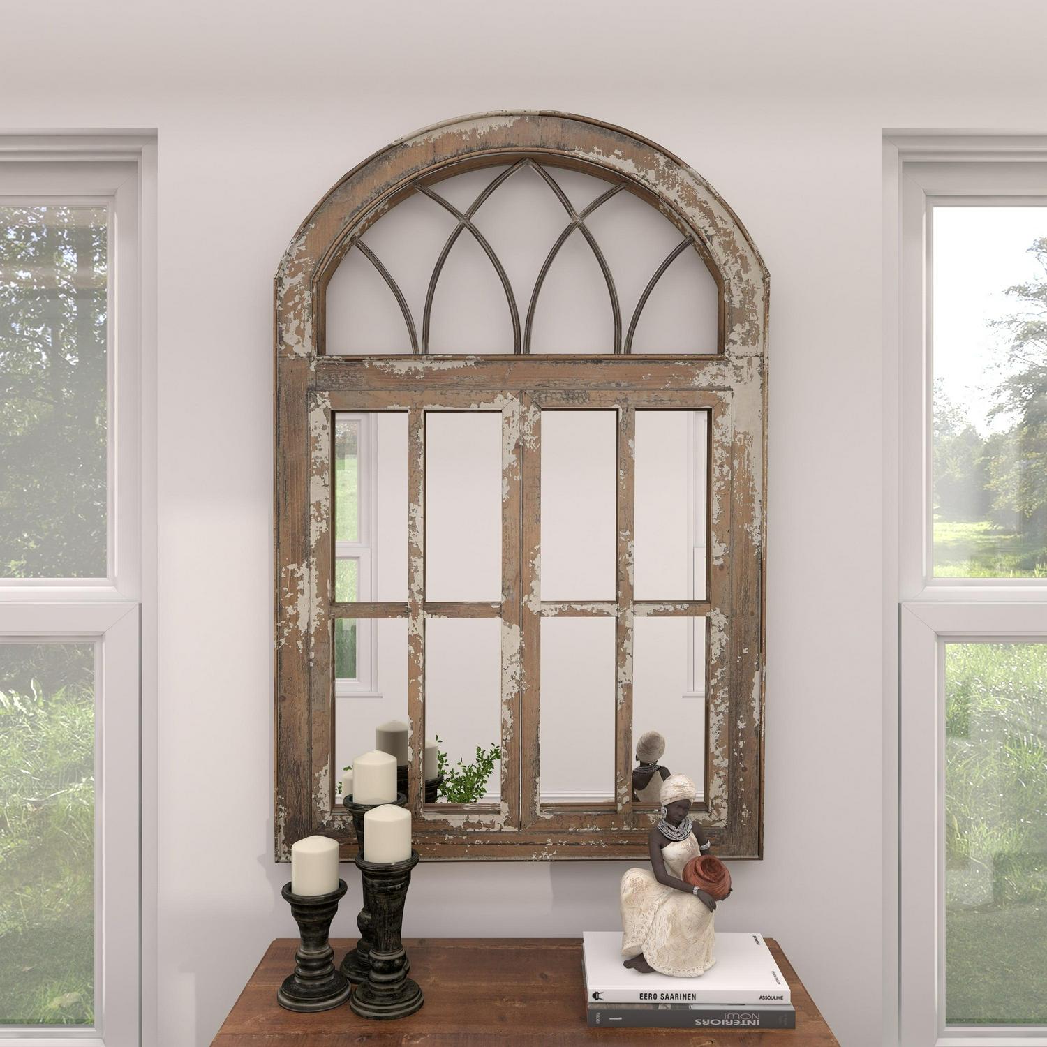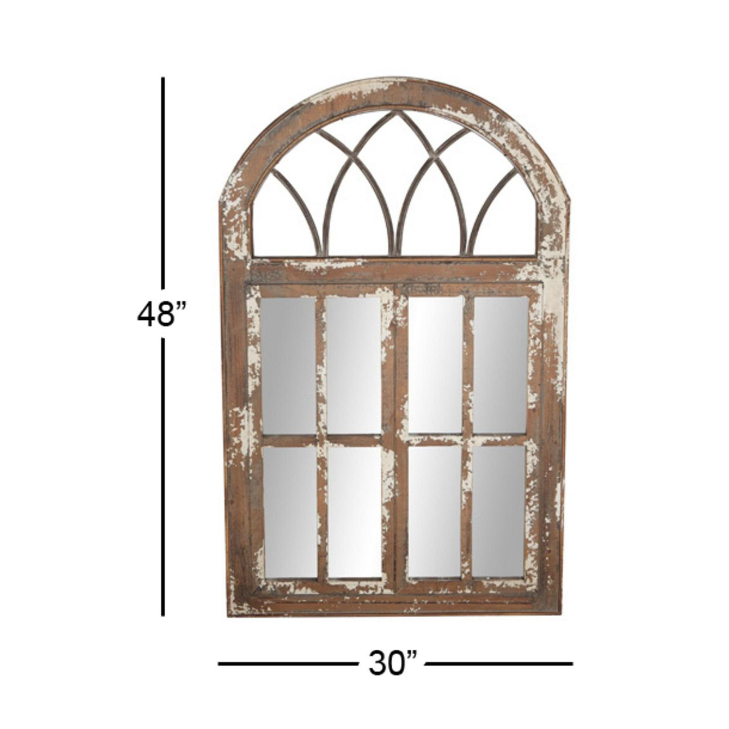 DecMode 30 x 48 Brown Window Pane Inspired Wall Mirror with Arched Top