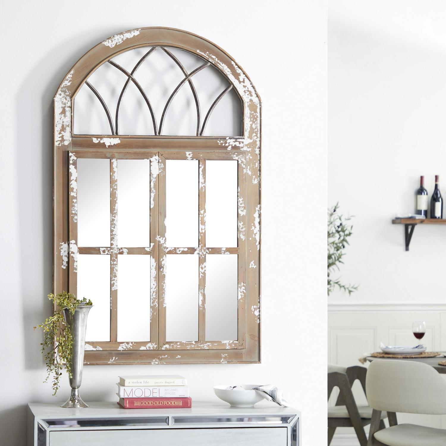 – DecMode 30″ x 48″ Brown Window Pane Inspired Wall Mirror with Arched Top makes a perfect addition to any home