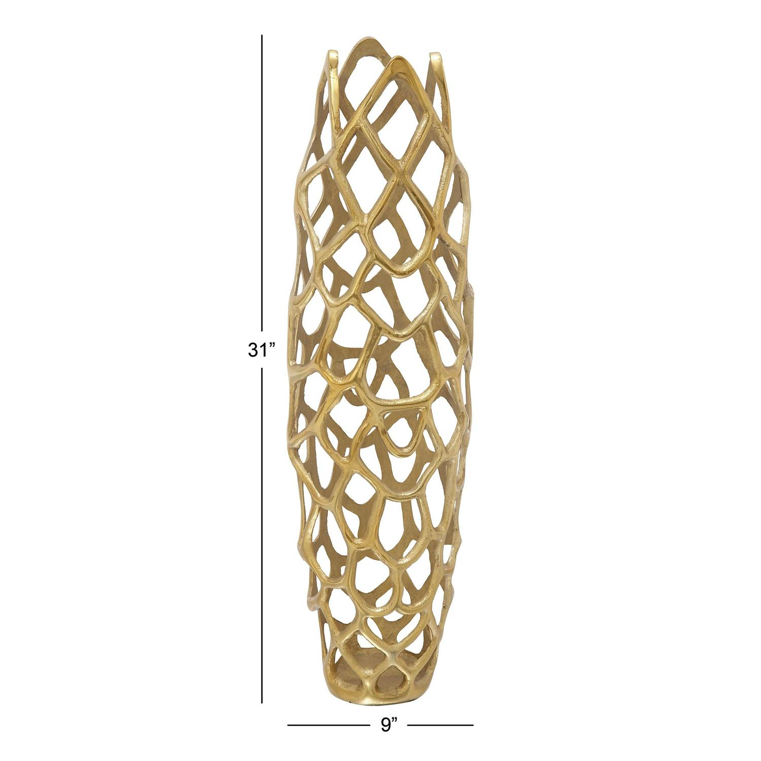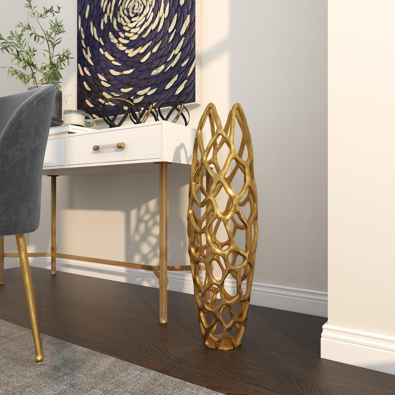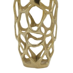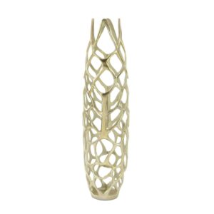 DecMode 31″ Tall Coral Gold Aluminum Vase is a unique addition to your stylish home. The unique and attractive design of this gold abstract decorative vase makes it an instant conversation piece and a gorgeous accent decor for your home. Designed with felt or rubber stoppers at the base that prevent scratching furniture and table tops, as well as sliding around. This item ships in 1 carton. Suitable for indoor use only. This item ships fully assembled in one piece. Made in India. This is a single gold colored vase. Contemporary style. Vase has a 4.20 in mouth opening.