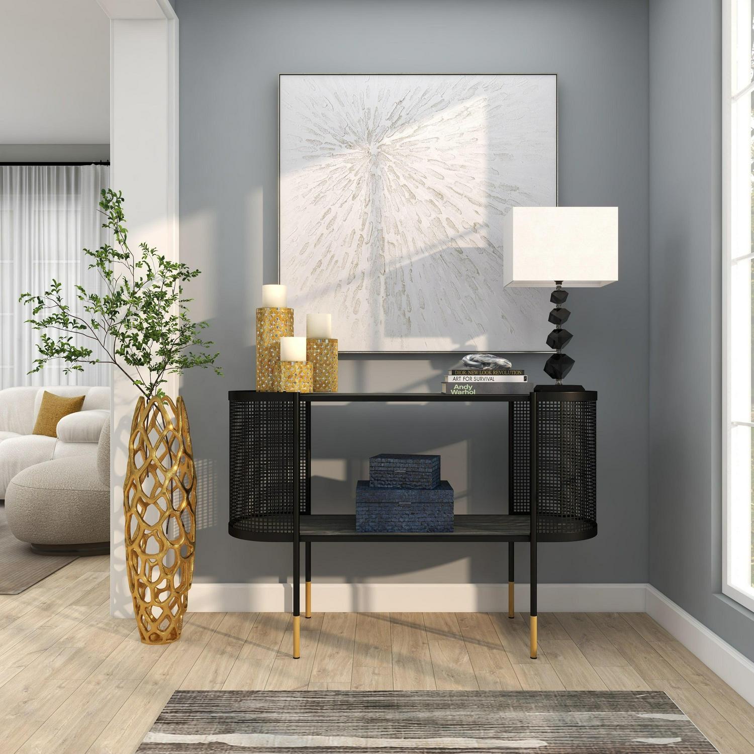 – Impressive shiny gold floor vase showcases a tall body with a deep setting, and designed with an abstract cut-out pattern that gives a unique appeal to your home