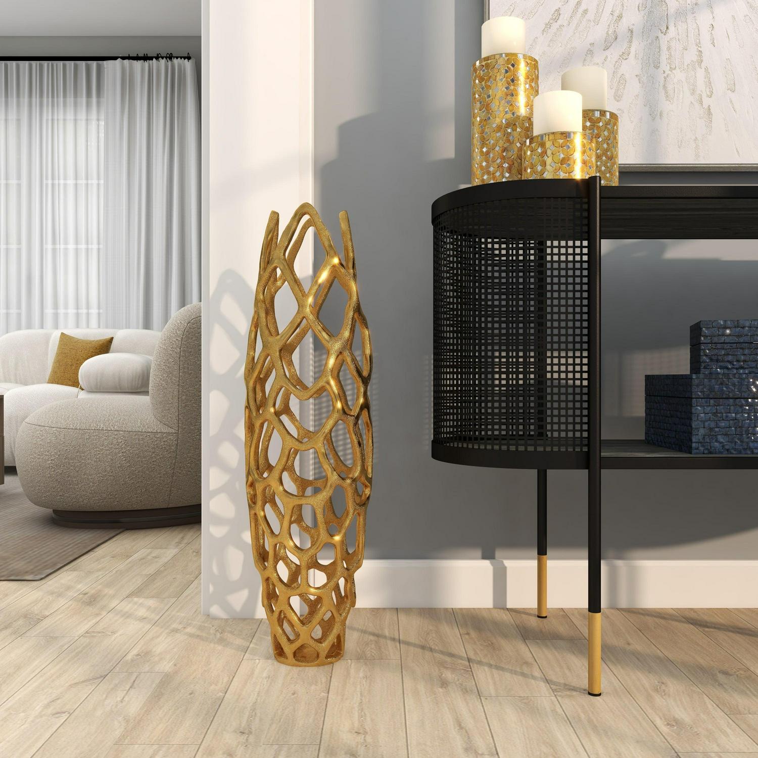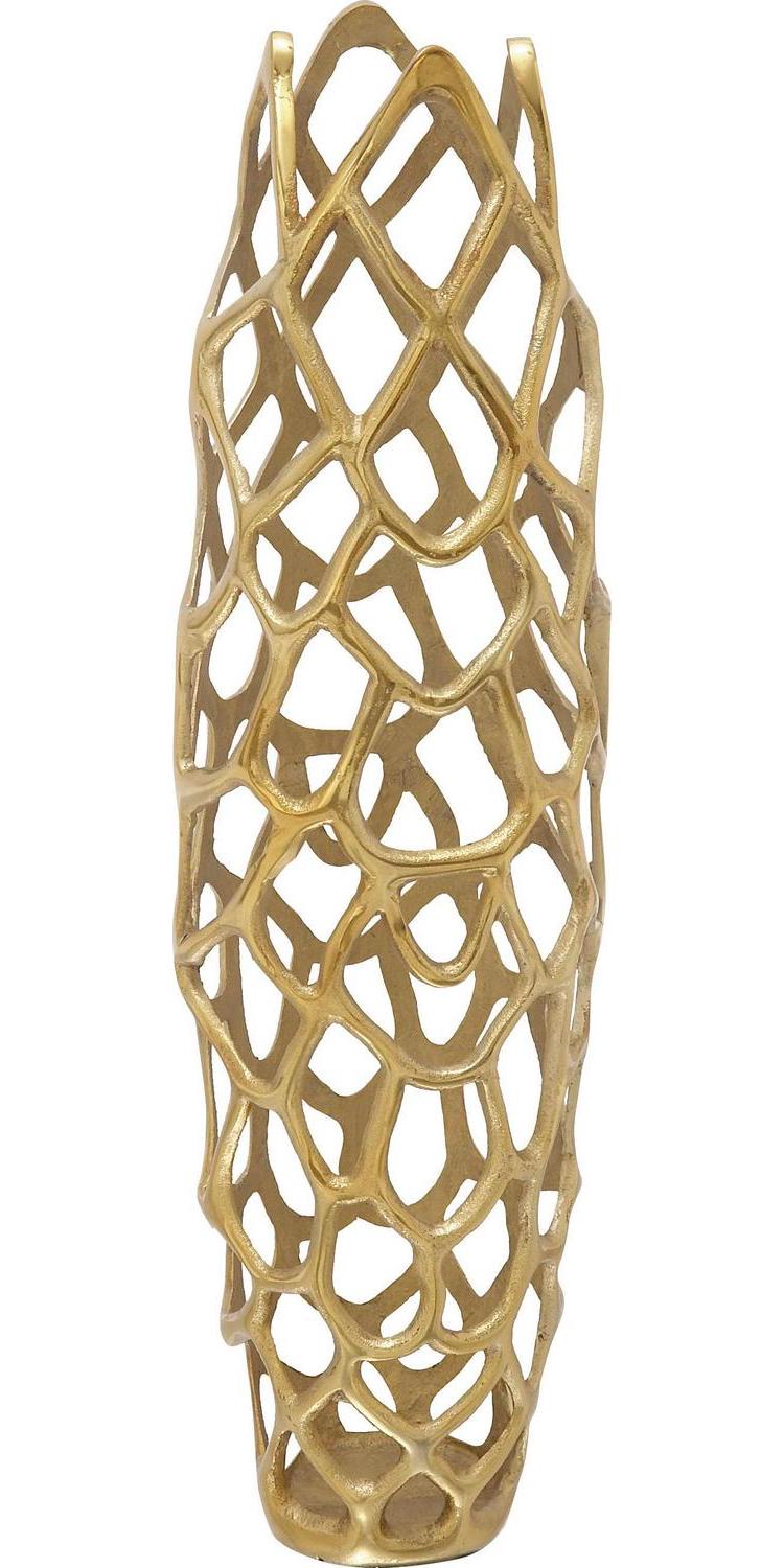 – The aluminum material of this gold tapered tube vase is molded and cut to create a unique woven net structure